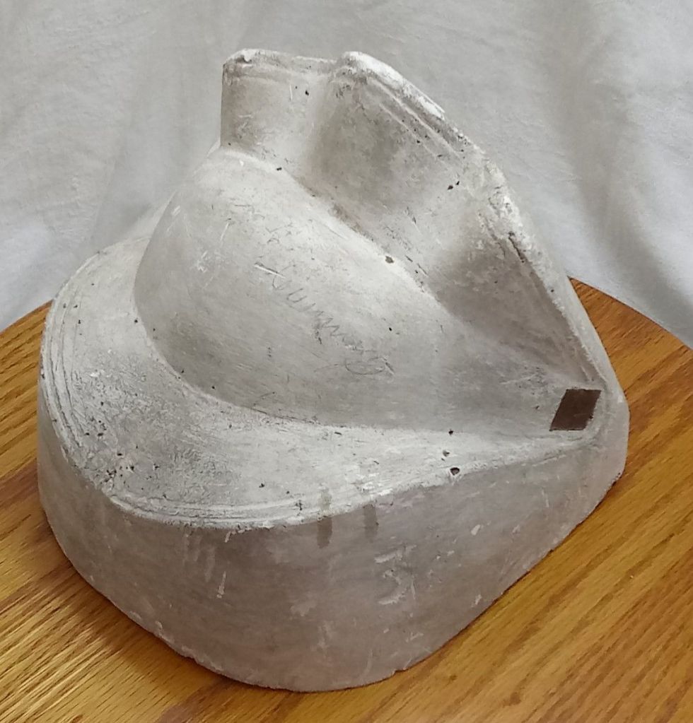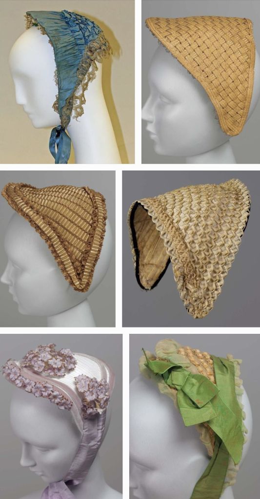 Visually, when the outer rows of plait are removed from these little bonnets, the core base shape is quite similar to the crown shape on this fanchon bonnet block from the mid-1860s.