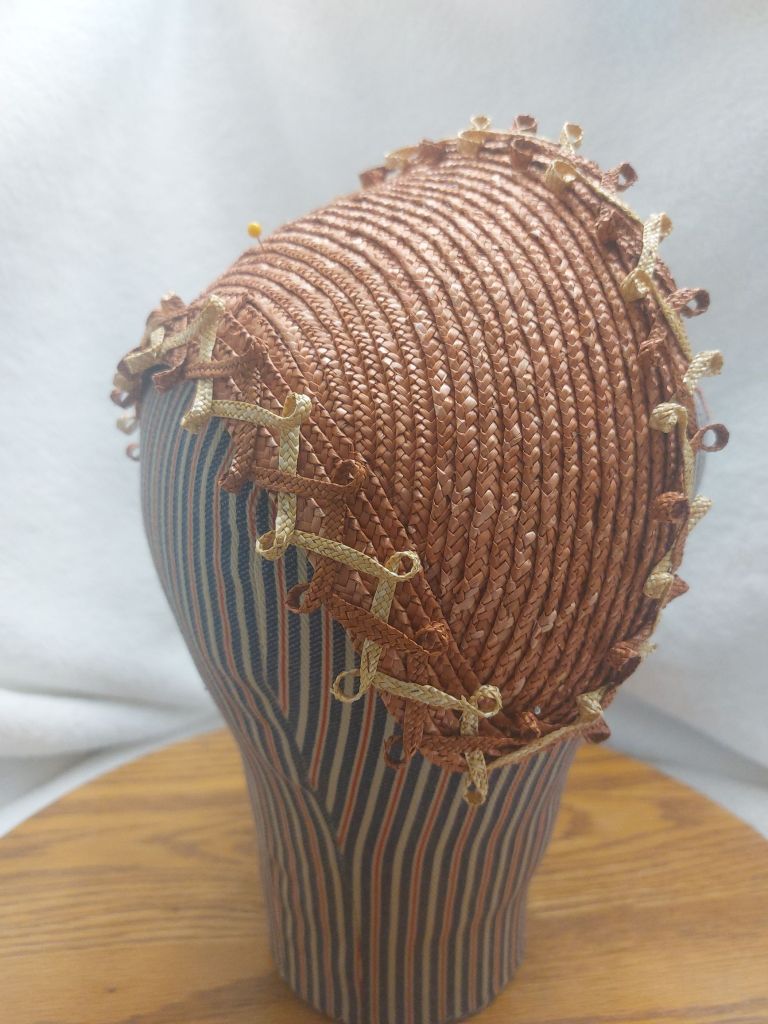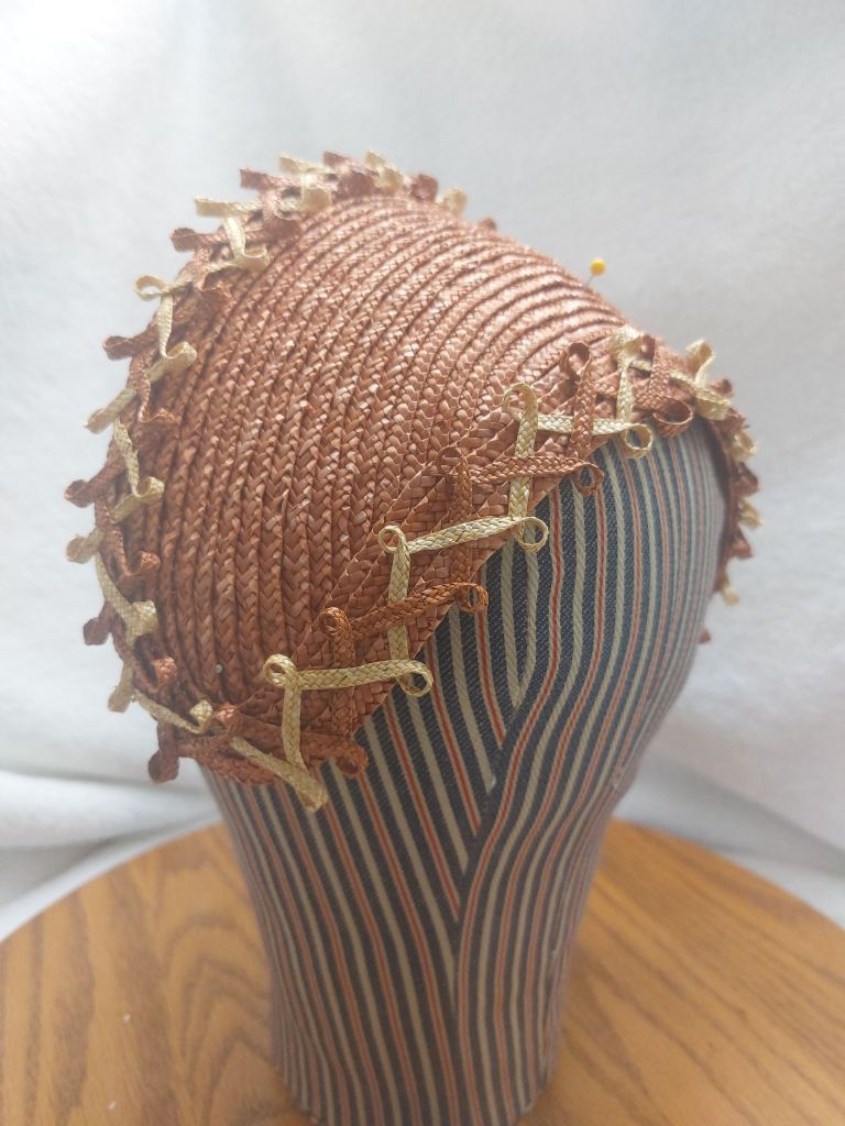 It was very tempting to create most of an earlier bonnet to see if I could cut this shape from it. I refrained because I didn’t want to waste the straw.