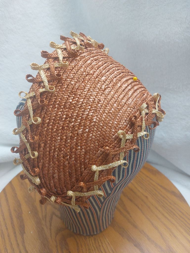 In the process, I found something important: The shape worked in straw cups the curve of the back of the head. The curve lands perfectly on my smaller head. For me, there is a significant difference between this shape and the flat shape I see reflected in other attempts at this bonnet.