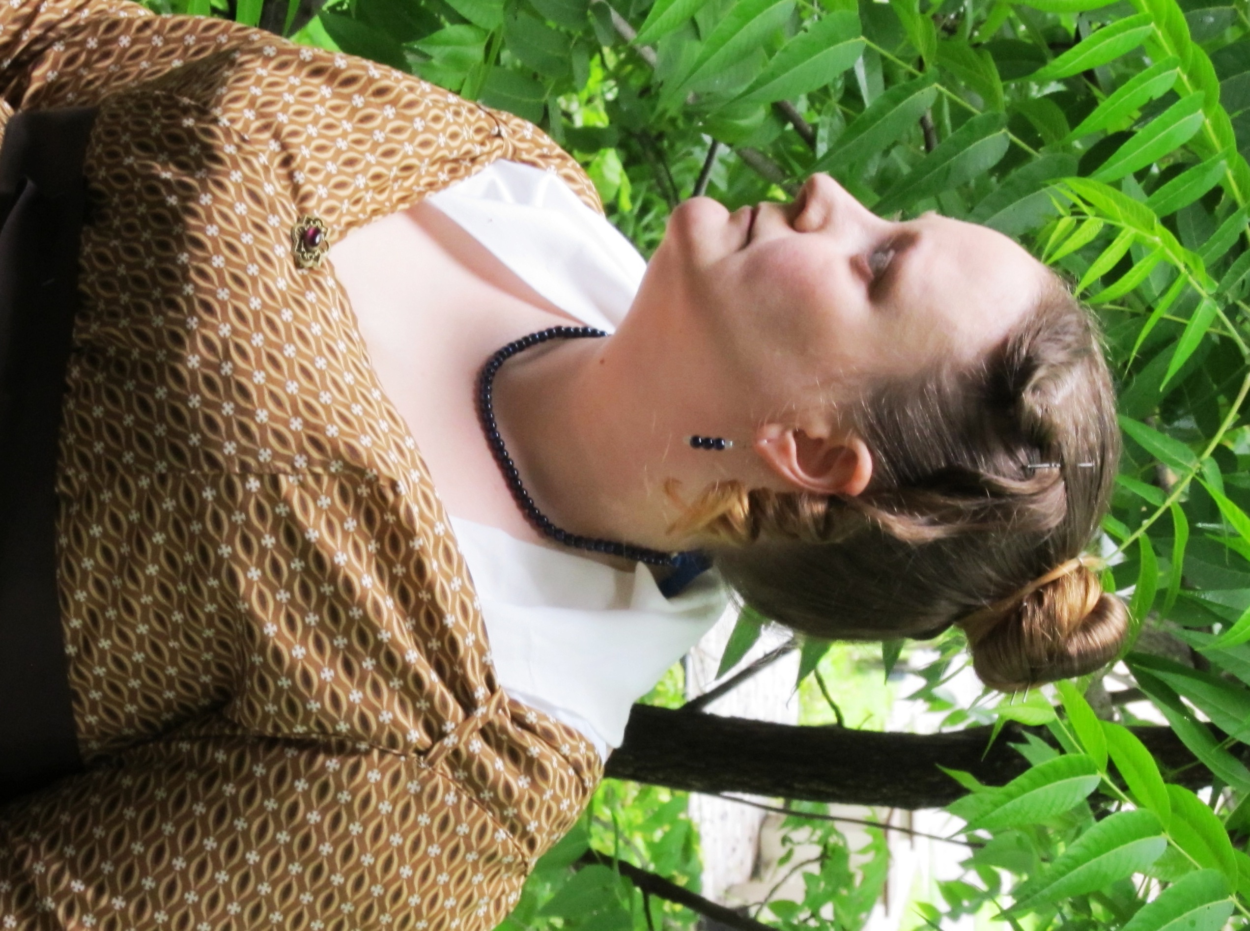 Okay, so I need to do better about the smiling thing. The dress was very comfortable, the sleeves in particular. This is note worthy because I find sleeves to be a pain because of my large arms. Another note – I’ve never worn so many pins before. Once dressed, I discovered the cut of my bodiced petti and the cut of my bodice do not go together. Ooops. I guess this means I need another dress and another bodiced petti. Darn.