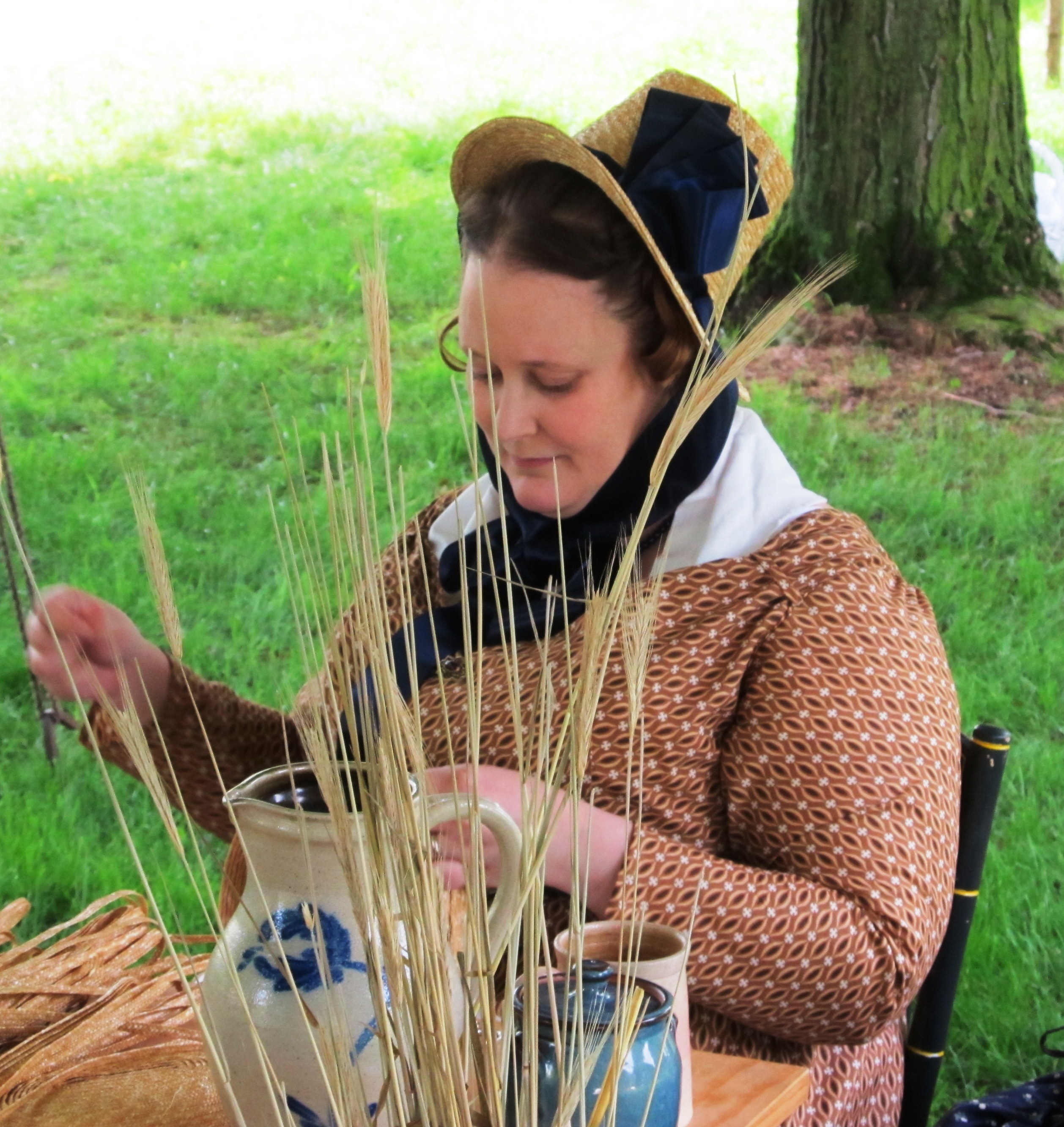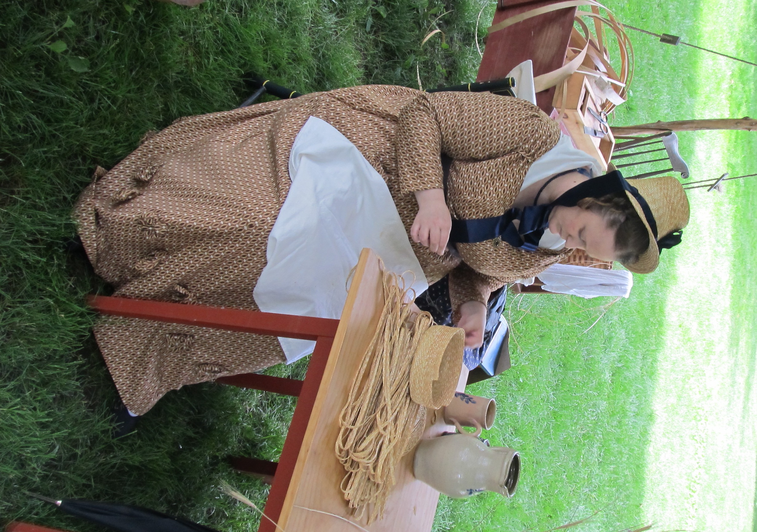 I spent the day demonstrating how I sew straw plait. I mostly worked on a Regency era bonnet and a little bit on a hat when the bonnet needed to rest.