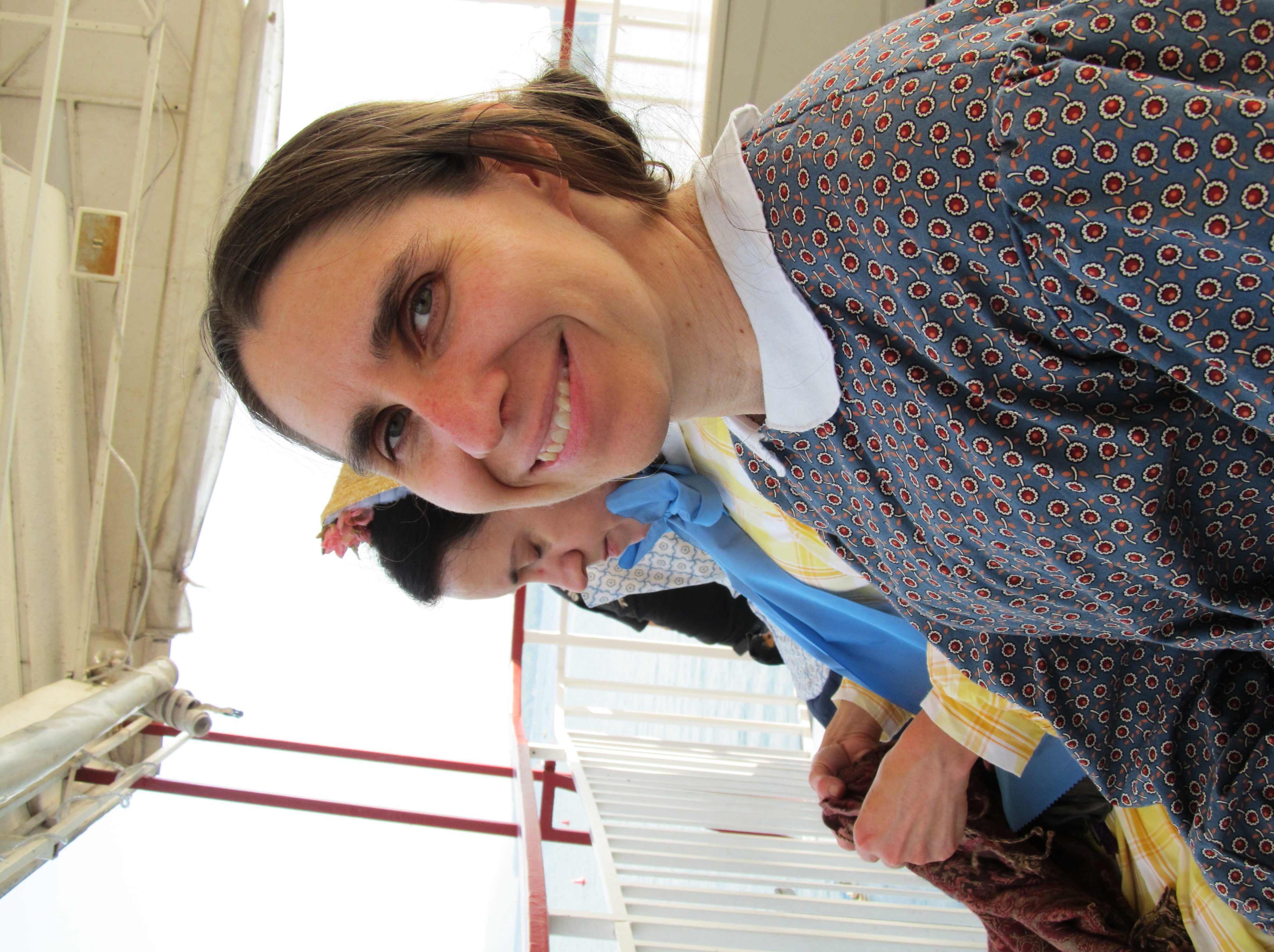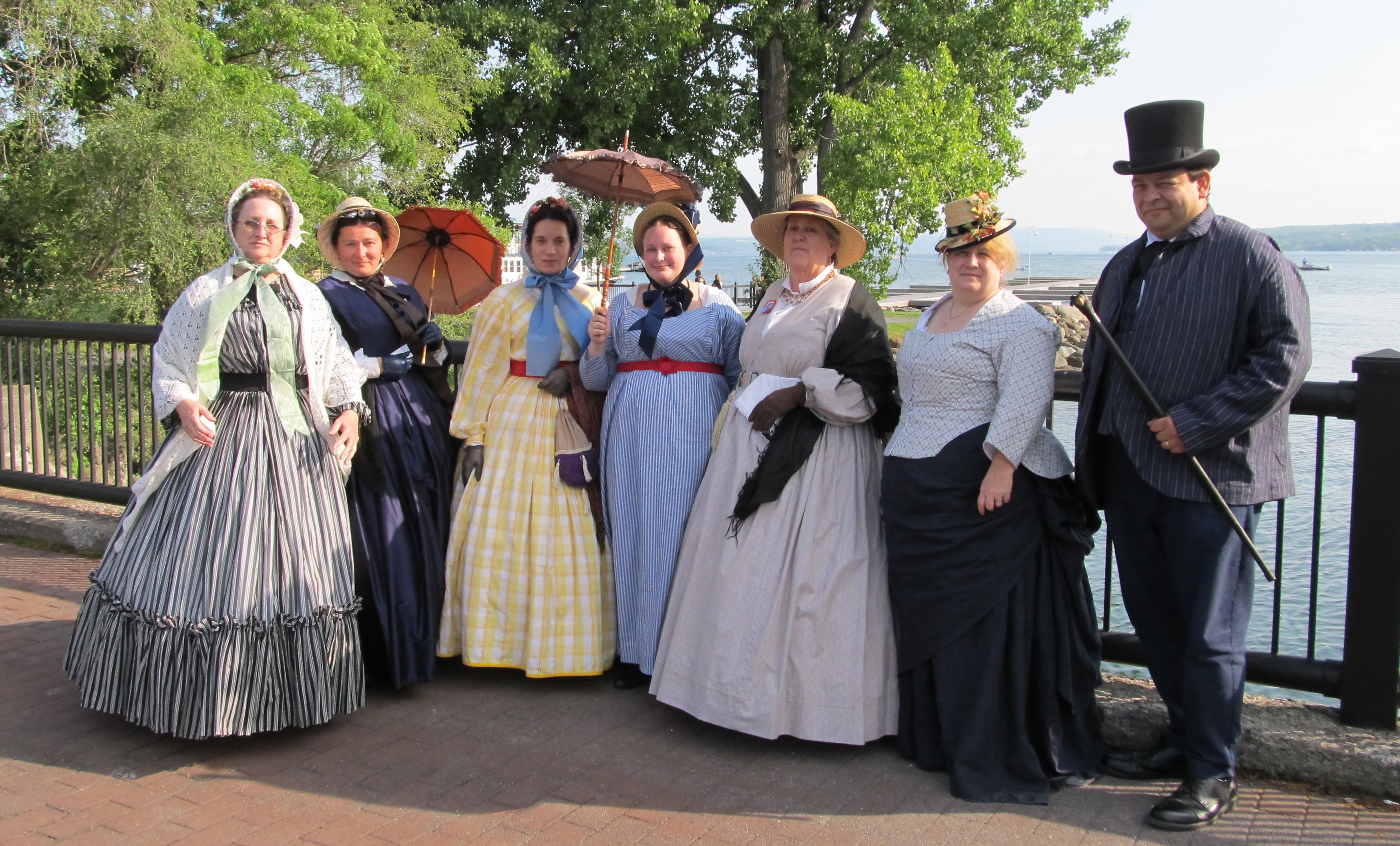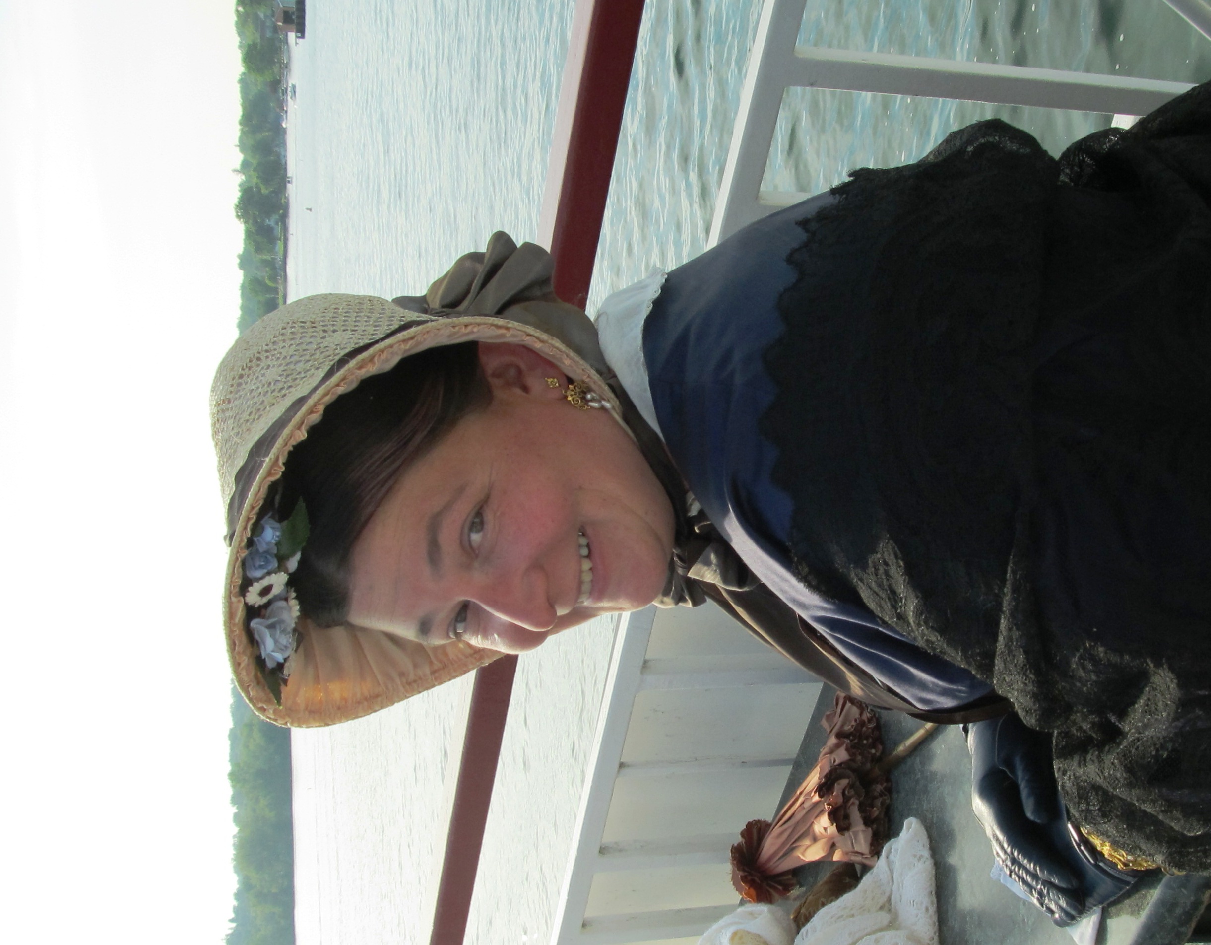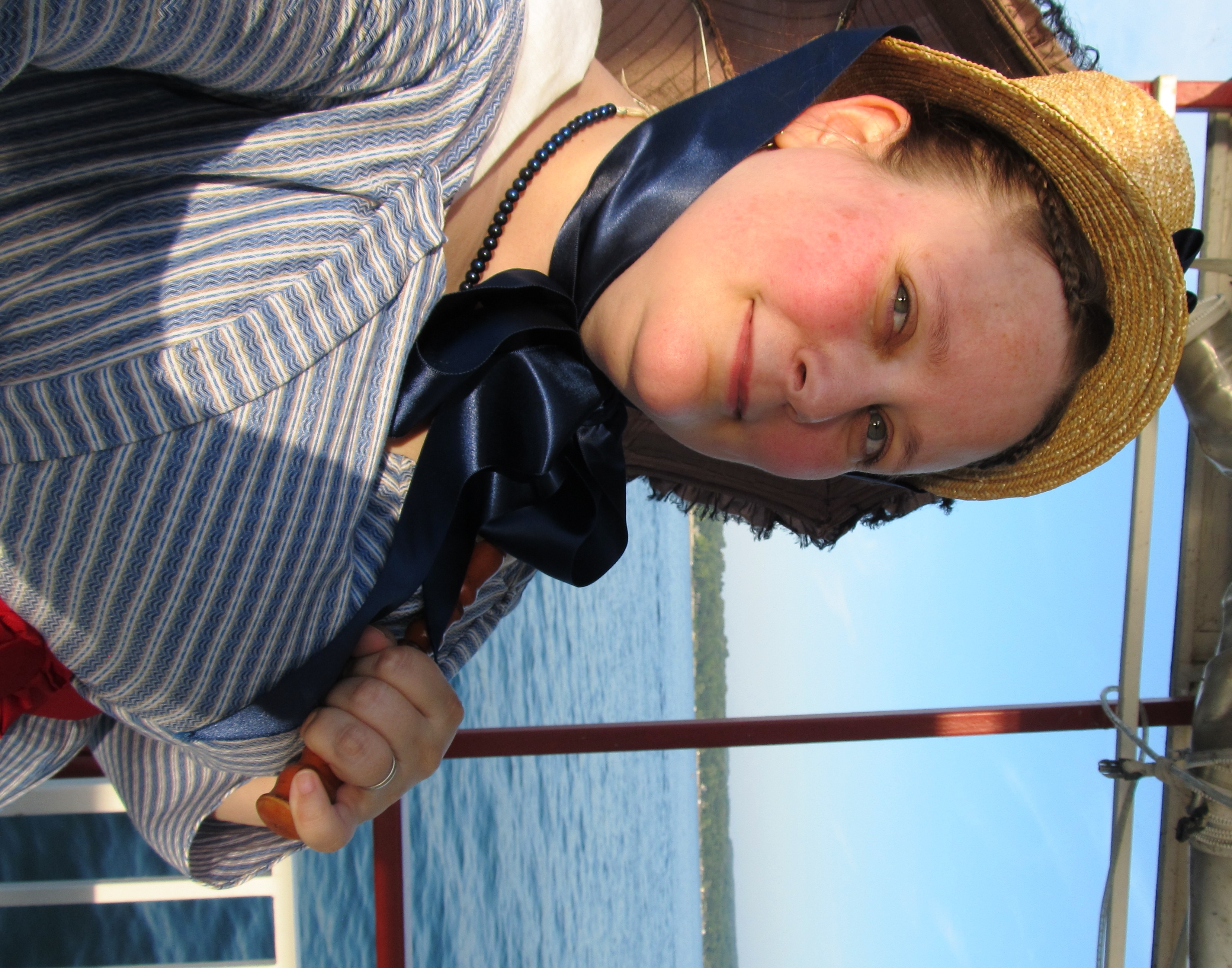 We started our afternoon off with a little picnic in the park near the landing. I packed a small repast of Spanish cheeses (very tasty, no clue what their name are at the moment), bread, strawberries, tarts and lemon water. I was quite convinced that Jody, Trish and Max’s picnic basket was bottomless. These ladies put together an amazing repast. There were potatoes, cheeses, sausage, chicken, eggs, berries and tarts. Max made this period cheese recipe with mace and port in it. It was incredibly tasty. (I’m hoping she will share where that recipe is.) Jody did a tasty twist on lemonade with mint and lavender. The lavender really set it off. I will be stealing that idea.