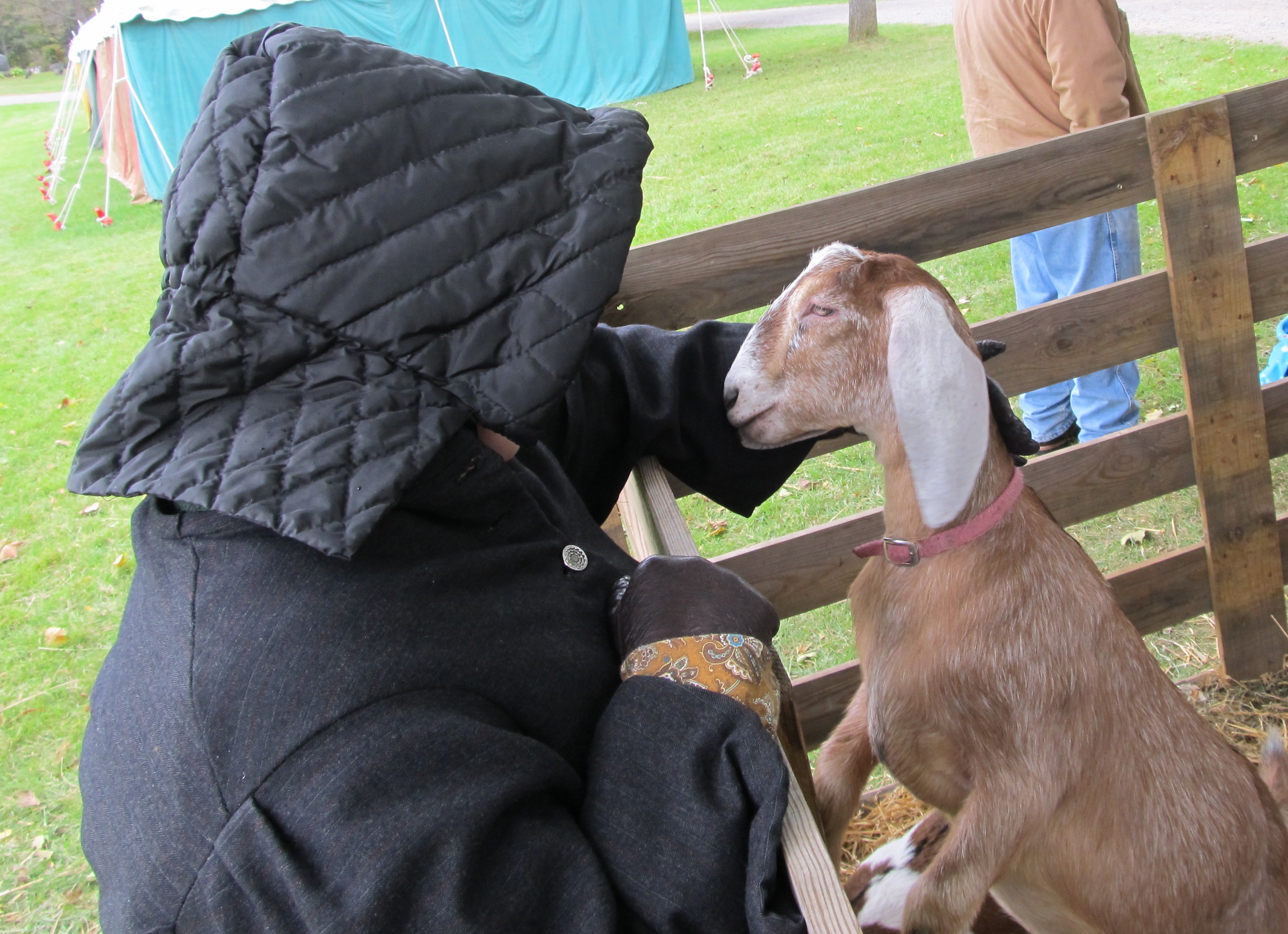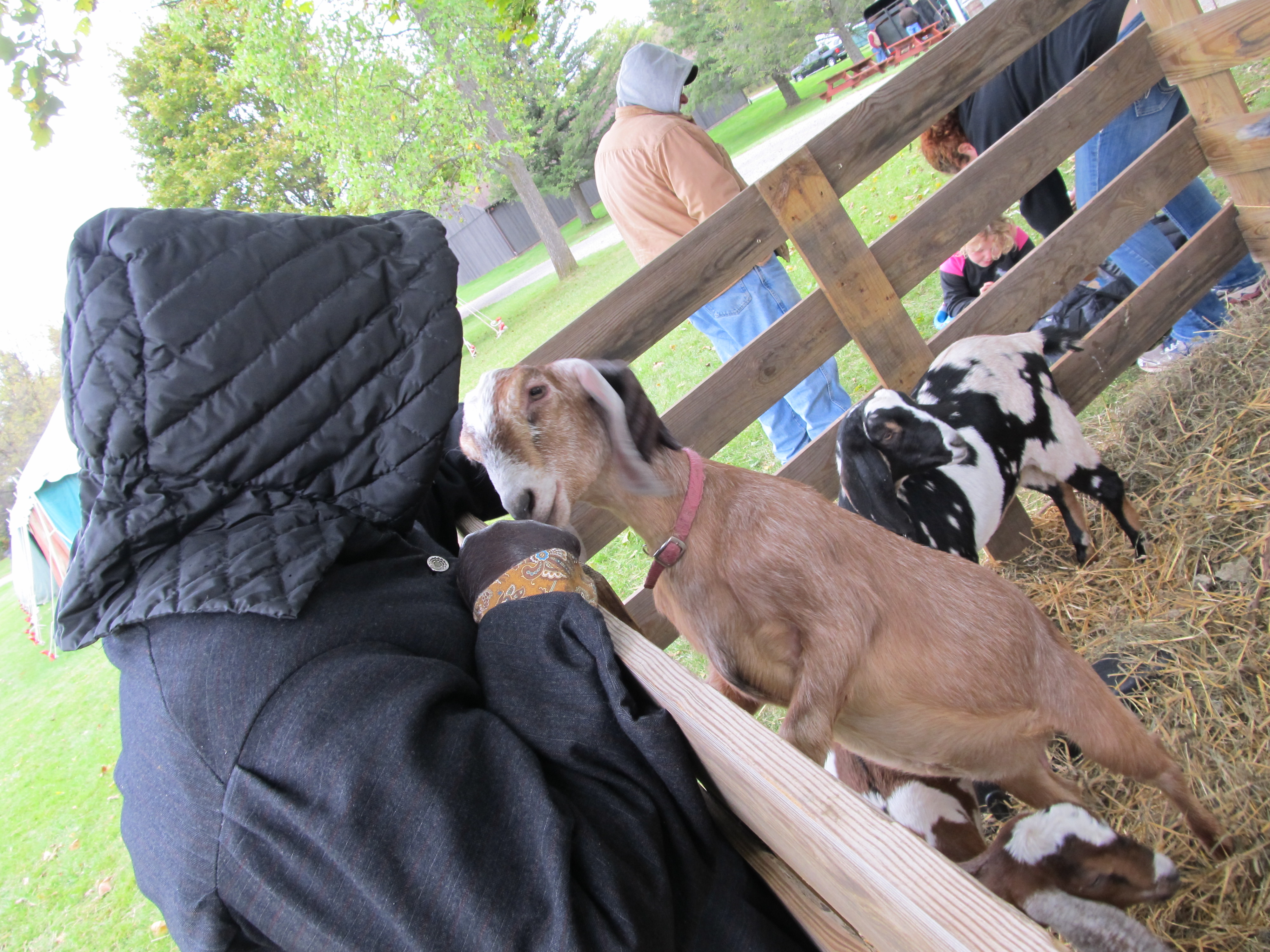 Lastly, we have my mobile favorite. I got myself some goat lovin’. This goat was such a sweetie. While I was petting this one, a smaller one was nibbling on my wool coat and dress just below. No marks, best I can tell. Eventually, one of the bigger goats started knocking the one I was petting out of the way. When it got aggressive, It was time to go. The little one bleated away at me through the gate while the one I was petting just starred. 😦