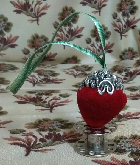 By the way, strawberries are a little challenging to photograph. I will be making a little stand to change them from. In the meantime, I played with some spools/bobbins as stands. Now, I think I’ll make a little ring stand too.