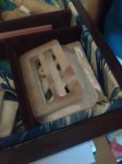 A pretty buckle arrived today. This is an original Gutta Percha buckle I spontaneously bought last week when I saw it really labeled for a fraction of what Gutta Percha pieces usually are. It is actually, likely a pressed horn buckle. Elizabeth painted out the layers on the back. I can confirm there are definitely layers and the beginning of flaking on the back