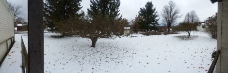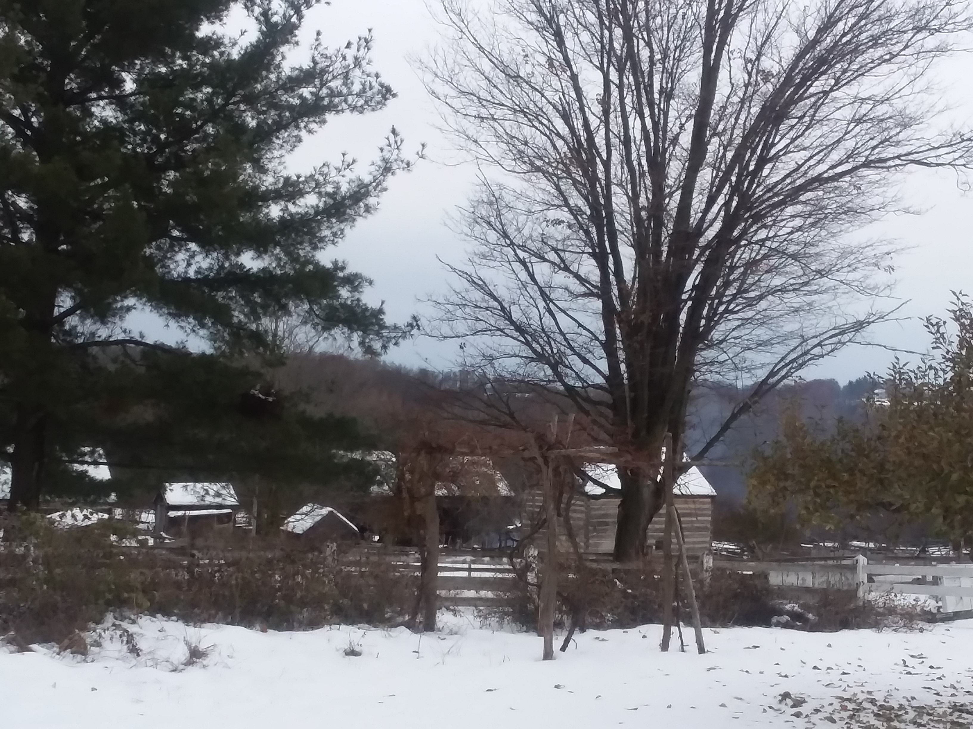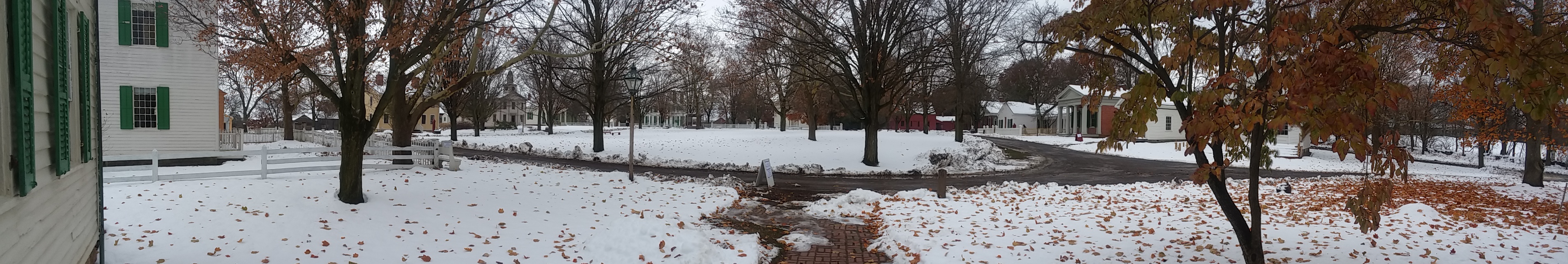 The area got hit with an early heavy snow Thursday evening through Friday morning, blanketing the museum in snow just in time for Preparing for Winter, aka Preparing for the Holidays. It was quite the sight to see the bed of snow covered in leaves and pine needles. The snow came before the trees had fully given up the last of their leaves.