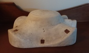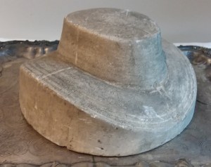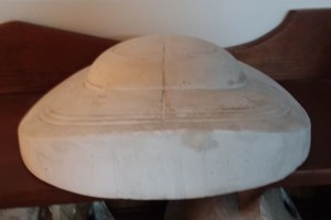 Hanging out, and fitting, on the shelf is the mystery hat block. This nifty shape is one I have yet to connect with examples of what it made. The waves brim is quite unique.