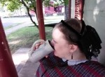 This event, every last one of us, visitor, reenactor, and staff were Hot. As the days progressed closer to the event, weather alerts increased, warning people of the heat and heat index reaching 110 degrees. This is quite hot for for the Finger Lakes region. The museum took great care to make sure visitors and reenactors were as comfortable and healthy as possible. They set up cooling stations, emphasized which buildings have air conditioning, and had active emts on hand. This is one of the cooling stations behind the millinery.