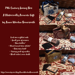 I find I always need something period to write on at events. The Button Baron has writing implements for almost any need. They have full writing desks with pens and paper to add, a really nice on the go writing roll, and pretty marblized journals that would make a great stocking stuffer. Btw, this is the size I keep in my sewing worlbox.