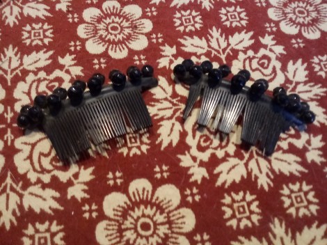 Original side combs pressed rubber with jet glass