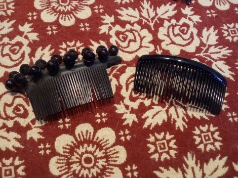 Original back combs. Vulcanite right. Gutta Percha left.