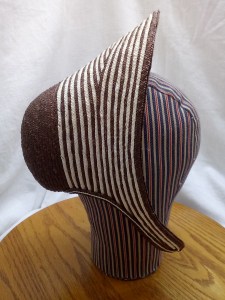 Here is the striped bonnet I finished this morning: