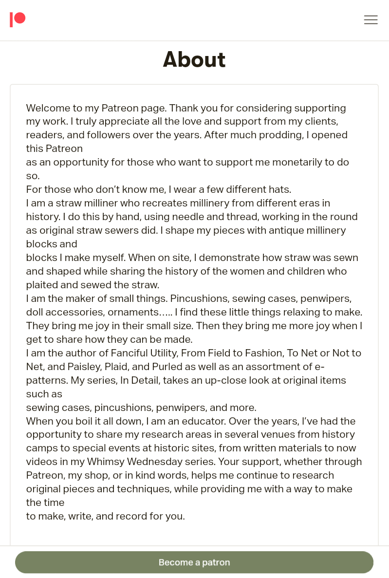 Patreon is a platform that allows Patrons a way of supporting artists, writers, performers, and researchers on a monthly basis. Creators often provide behind the scenes content or other material as a thank you for support.