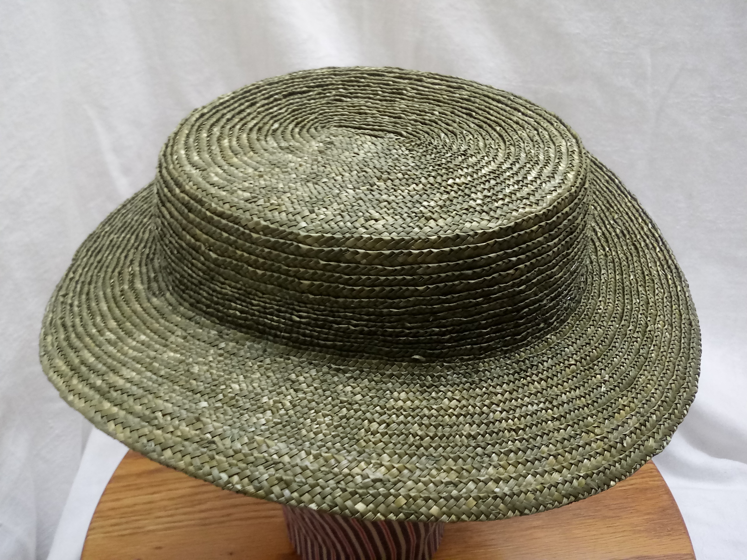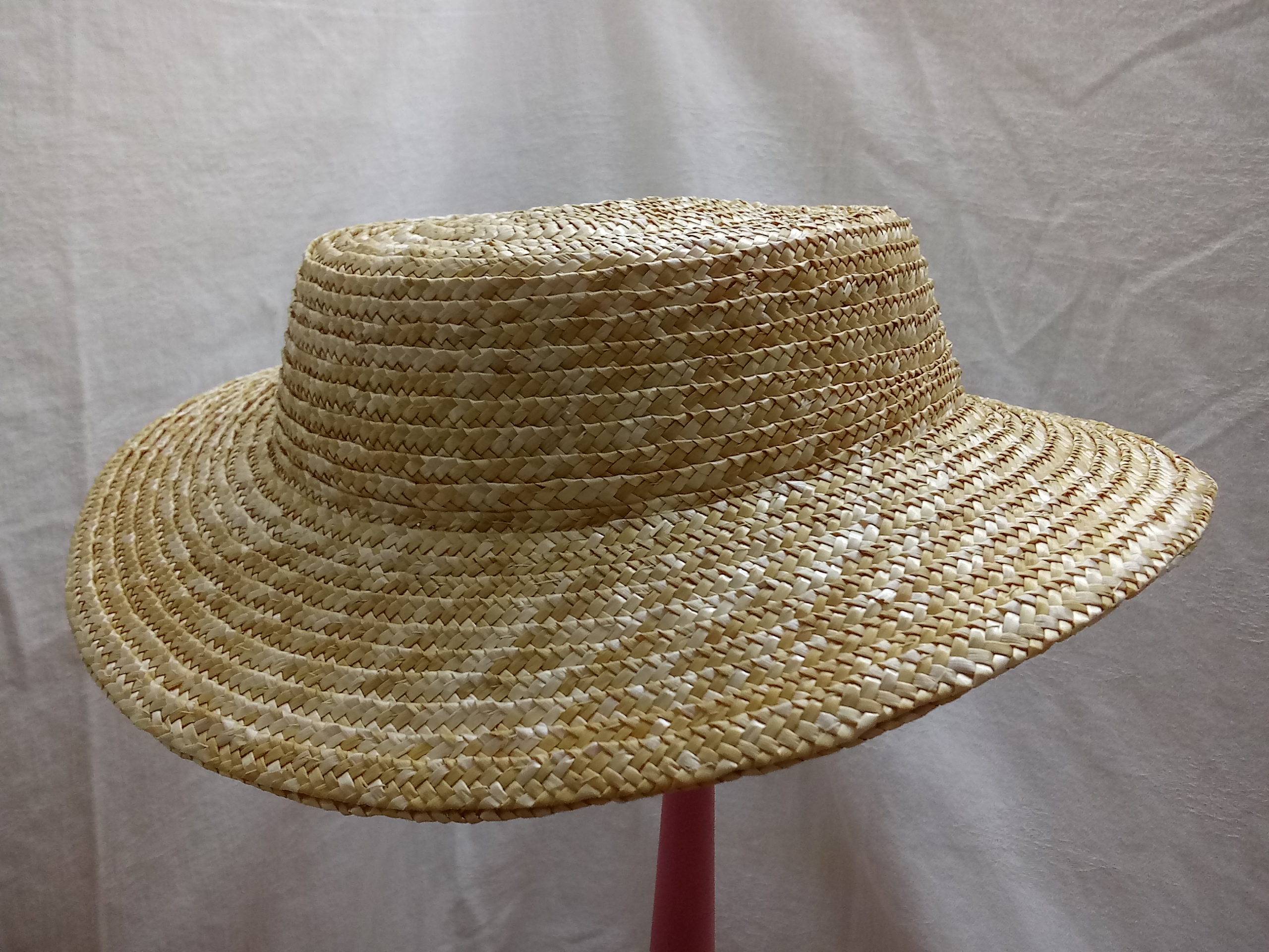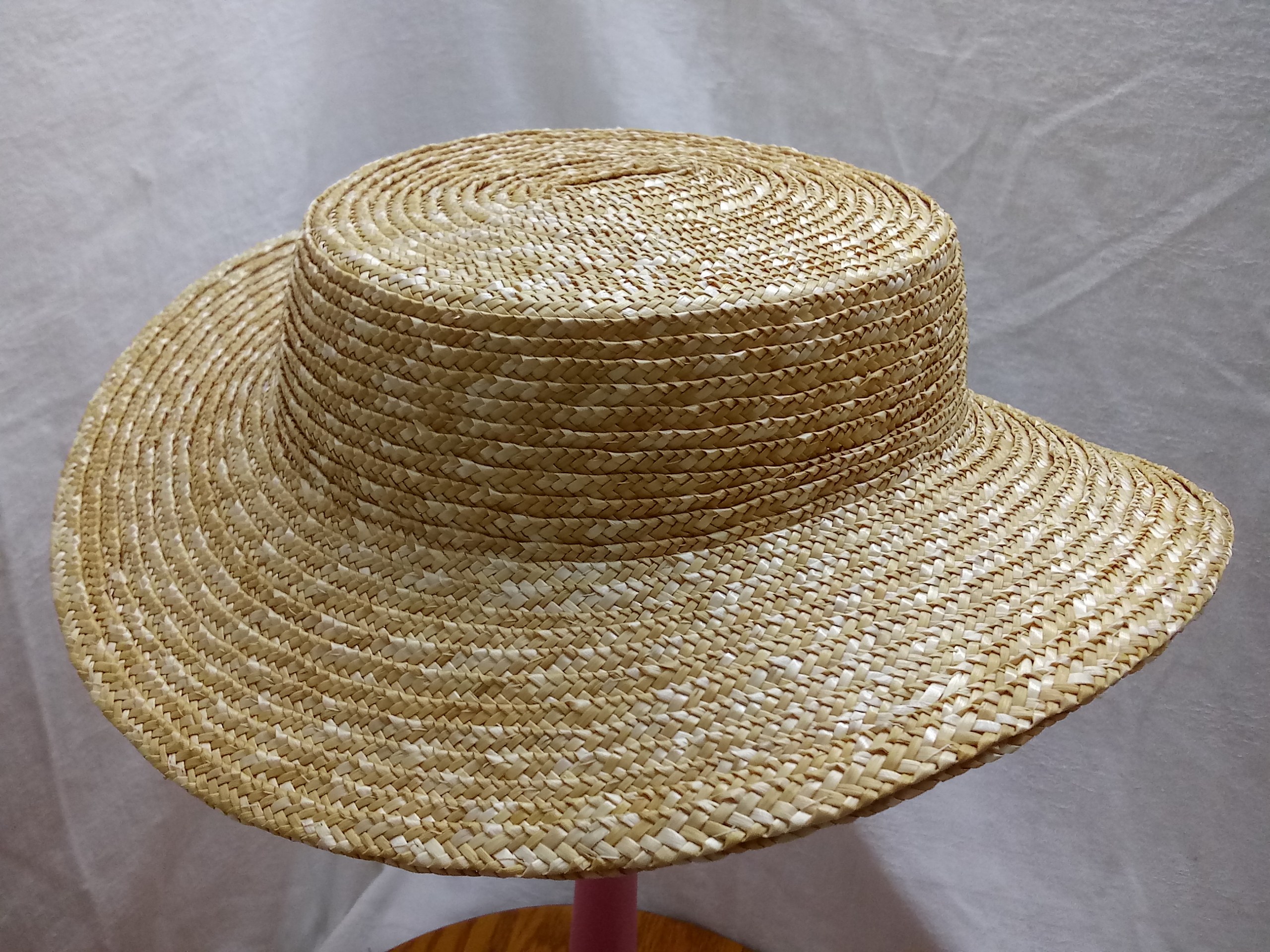 To start off, this block is a tapered crown with a shaped brim. This block may have originated from the mid 1850s through the 1860s. Notice the crown is shallow. It rises 1.75″ in the front and 1.5″ on the sides. This crown is 19 inches around, meant to be worn high on the head as with most fashion hats of the era. The brim is only deep enough to cast some shadow on the eyes, but not shade the whole face.