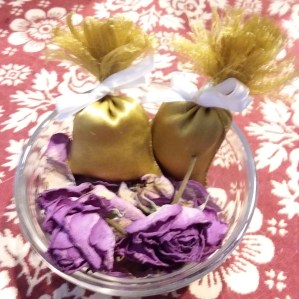 Ribbon sachets are easy to make using your short lengths of ribbon. You can fill them with your favorite petals, leaves, and flowers to tuck in your drawer, workbox, or pocket.
