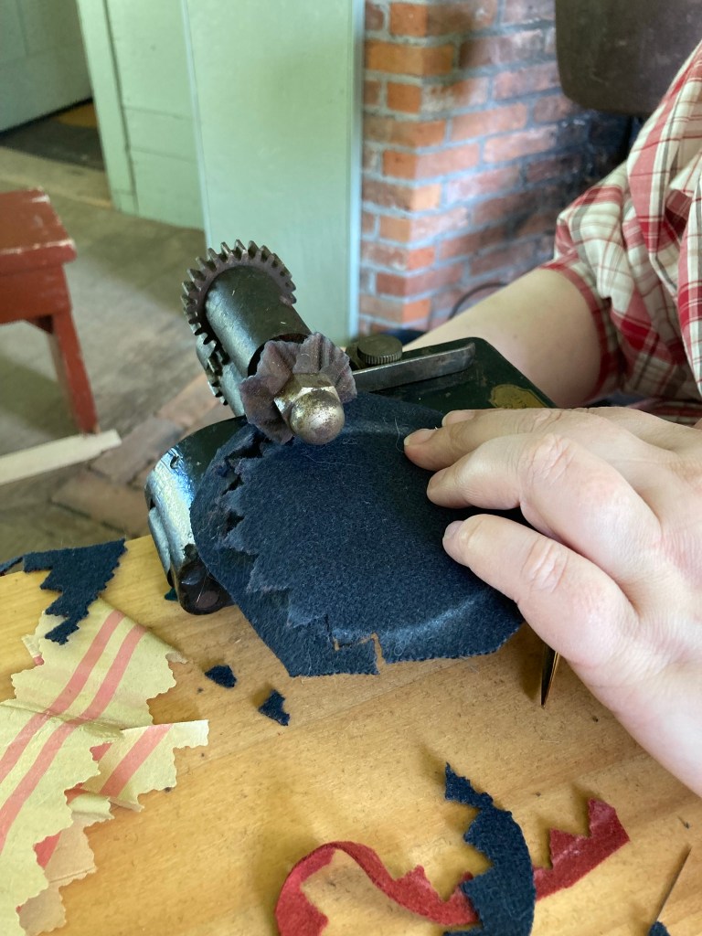 I love your new 1830s dress! I found that once I got started I just wanted to keep making more of them… 🙂 The photos of you pinking are wonderful action shots!