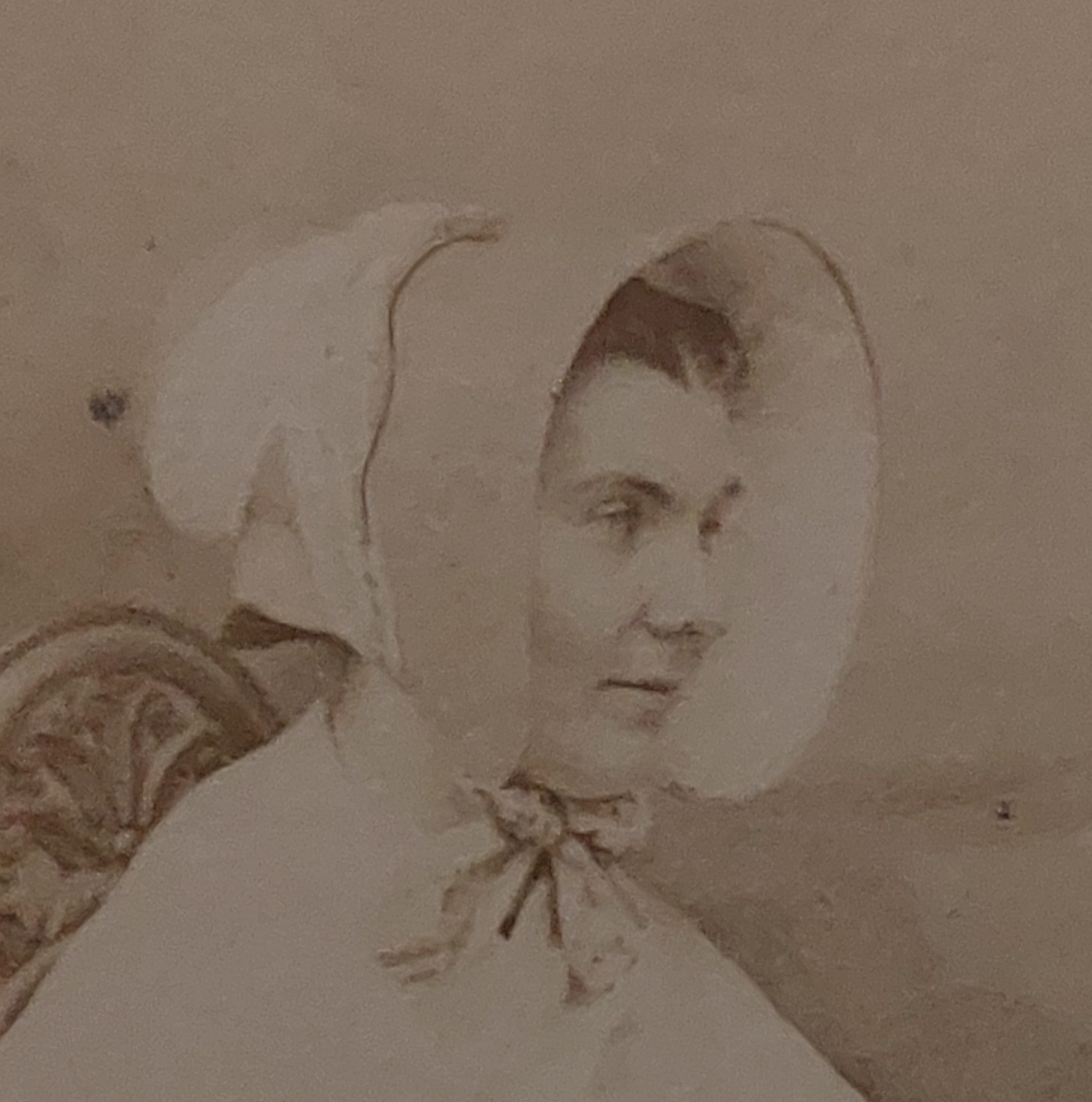 Usually, when we see a bonnet in a cdv we get a bit from a slightly turned front angle. We can see some shape and some trims.