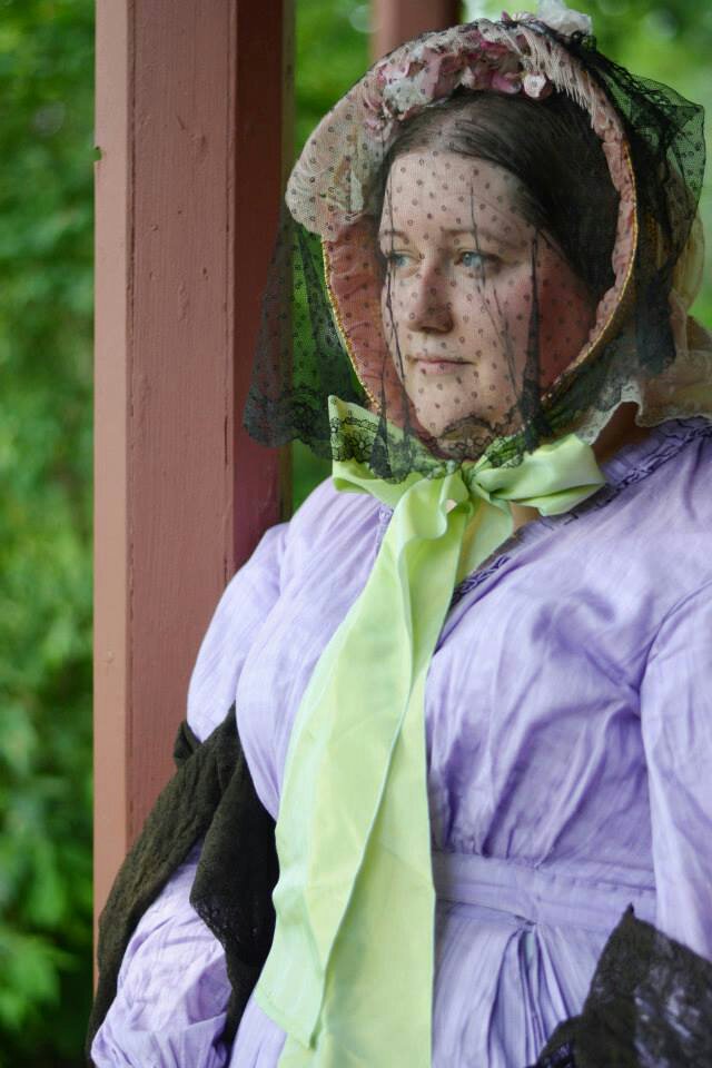 Here is Lisa Springstube Lindsey in a mourning bonnet with the full frill helping hold it and a Marie Stuart: