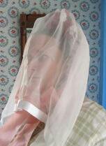 This is my bonnet from last year. (How awful is my facial expression?) I think you can see the position of this one. This stays with the work of the frill and my hair.
