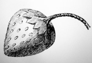 We find directions for making strawberry emeries and pin cushions in multiple nineteenth century publications. The Girl’s Own Book, 1833, gives simple directions for an emery bag in the form of a strawberry. Eliza Leslie stuffed her linen strawberry, in The American Girl’s Book, 1857, with bran. Godey’s Lady’s Book and Peterson’s Magazine offer a knit strawberry emery with big leaves in 1859.