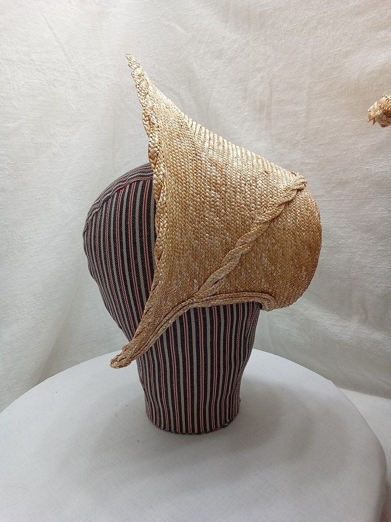 It seems I was in a vining mood this week. Both, the hat and bonnet I ,are this week have straw vining around them. I picture these decorated with garlands of spring blossoms, maybe some apple blossoms or cherry blossoms.