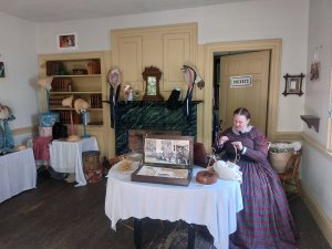 For the first time in years, I took a personal day for personal enjoyment. This allowed me to go to the museum Friday morning to set up the millinery shop prior to opening. It also meant, I was their as students arrived for their field trips. I miss field trip days. These kids and teachers did too. It was nice to see such happy and excited faces bouncing around the village.