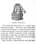 The first style is this basket bag style. The base is a basket made of straw plait sewn to shape. The top is a silk bag that draws closed. The construction concept is seen in A Girl’s Own Book, by Lydia Child as well as other publications. The basket base is made with a variety of materials in each description.