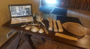 Despite a background in working with young children and developing a wide variety of camp and craft activities, I was a little unsure of myself going into this one. Bridging from interpretating straw millinery as an aspect of women’s history to straw as a hands-on experience was a leap for me. When I was brainstorming around the idea, I knew I wanted to focus on the “this become this,” or the “fiber to function” if you will. In my mind, it would have been great to show off more than wheat & rye to plait/braid to hat: flax to linen, cotton to cloth, corn to broom, bark to basket, etc.. But, in reality and two weeks, one component was it.