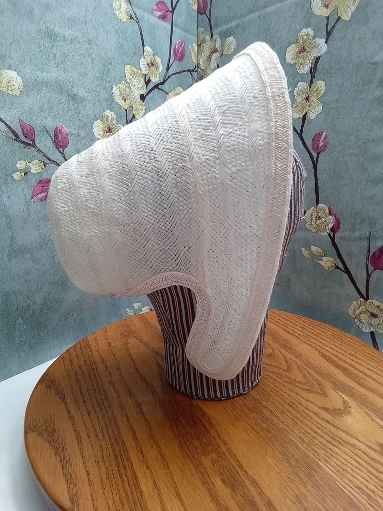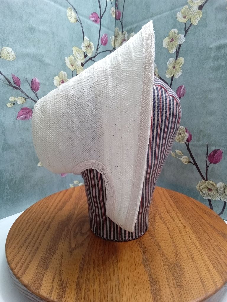 Four ultra fine woven straw bonnets suitable for the 1850s into the 1860s.