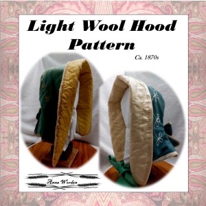 With this pattern, you can follow closely to the original wool hood or opt to make a couple variations for a lasting, accurate hood to wear with your 1870s impression.