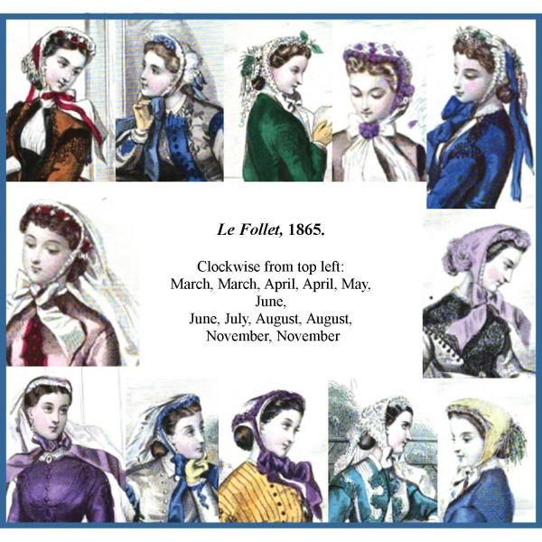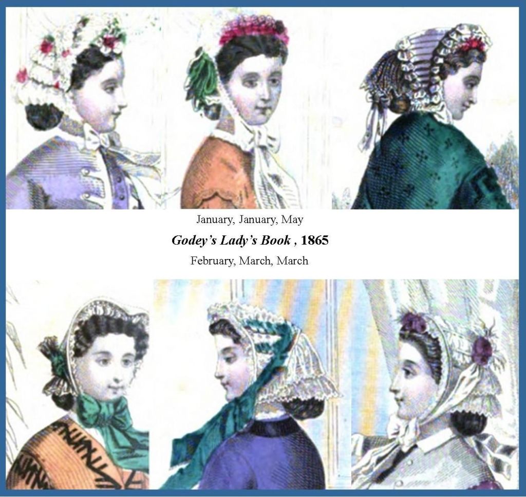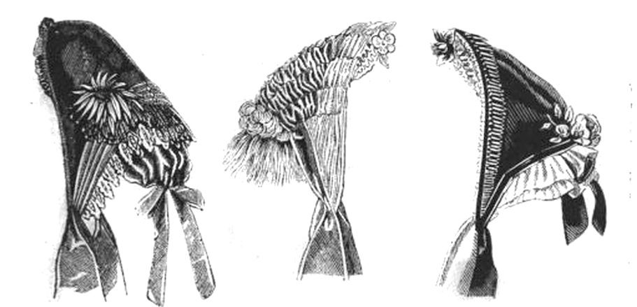 Examples of late 1860s fanchon “half bonnets” from the MET and MFA collections. (Screen shot of one of my phone folders.)