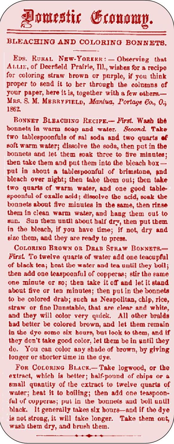 We have a bonnet treated as a working bonnet with a fashionable curve to the brim. She seems to consider it durable enough to handle the weight of the basket and contents (which appear to be leafy greens and a cloth.)