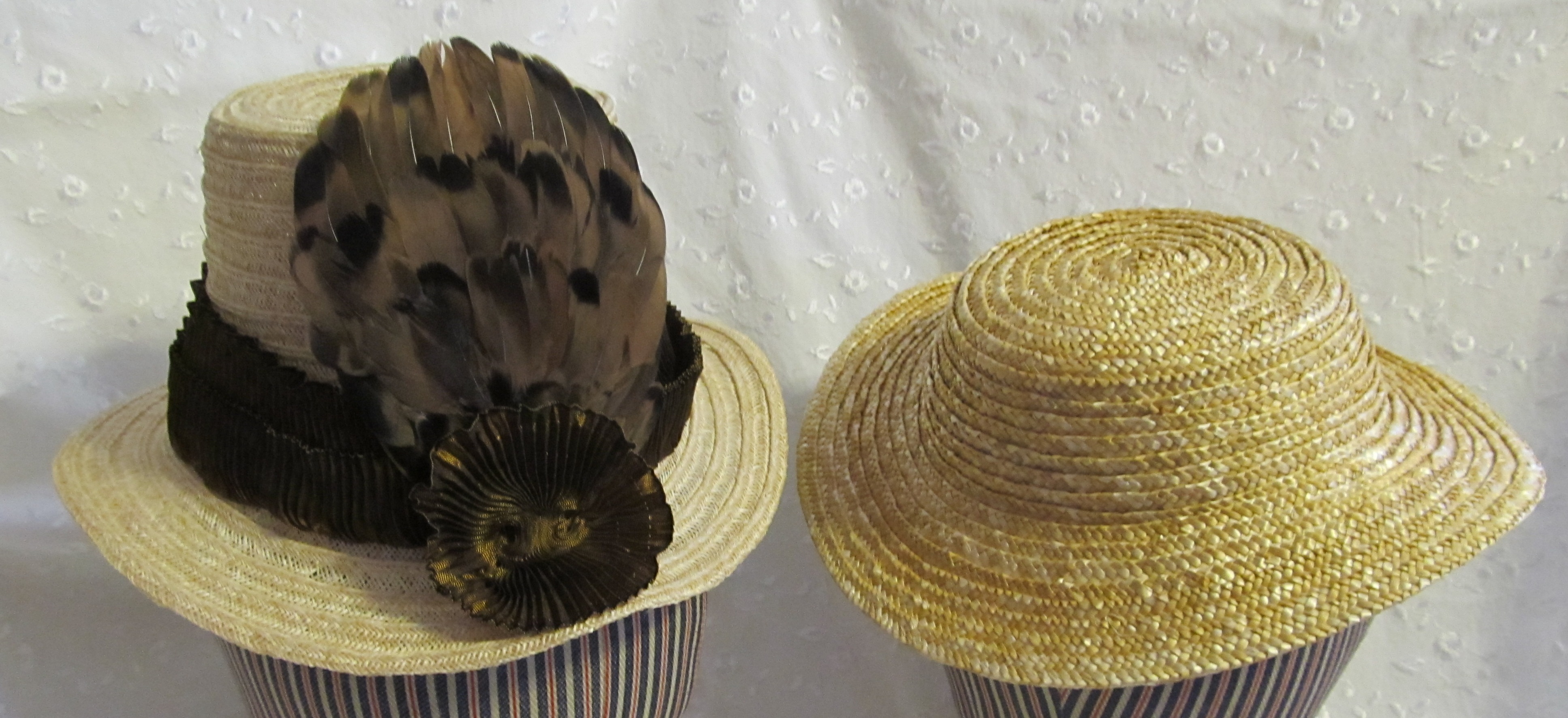 During these weeks I’ve been sewing away. I have a sampling of straw millinery pieces to offer you.