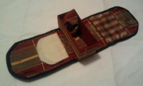 A useful case for holding shoe-buttons, thread, etc, is made by taking two strips of ribbon, seven inches in length by three inches in width. Make an inch-and-a-quarter hem at one end of each strip, and in this hem, an inch from the top, run a row of stitching, so as to admit a drawing-string. Midway between the ends sew the strips together, uniting them on each side as far as the casing, thus making a small bag. Half an inch below the foot of the bag make a second row of stitching, closing up one side of division. Take a piece of stiff pasteboard, a trifle smaller than this opening in width and three inches in length, cover with flannel and then with ribbon, sewing a tiny ribbon loop to one end. In this place several needles of various sizes, suitable both for darning purposes and for sewing on the shoe-buttons which the bag end of the case should contain. At the two open ends of the ribbon make hems in which strips of whalebone should be placed so as to secure elasticity and firmness. Then sew the edges together, leaving an opening at the end, to hold the darning cotton.