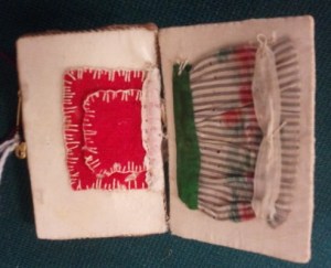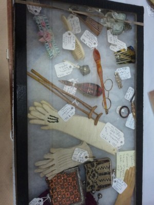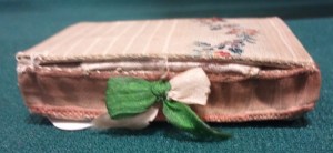 While Dan and I were driving through the Adirondacks, we saw several antique shops and yard sale signs. But, since we were zipping along and very, very eager to get to the relaxation of Plattsburgh, we didn’t actually stop. Until we knew we were much closer and slowing down as we came into a little town that is. It also helped that it was definitely time to walk around a bit. We found quite the little shop. (though not as “wow, awesome” as the small shop tucked into a barn on the way back that had the most amazing dark wood bed for a fraction of what I would have guessed.) Inside there was a nice variety of antiques, well-organized. There was a beaver top hat in its leather case, both in incredible condition, a nice lap desk lacking a price tag, a hand-carved sewing bird, a whole room of well cared for vintage textiles and much more. Now when comparing the state of the linens to the state of the ephemera….. well….