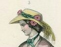 In the 1850s and 1860s, hats were worn much higher on the head than we are accustom to in the twenty-first century. Think about when you wear your modern beach or garden hat. You know that line across your forehead where it sits after a long hot day? You do Not want that. A mid-nineteenth century hat sat higher, at the top of your forehead, at your hair line, or even higher. Take a look at these fashion illustrations from 1860-1862. Notice where each hat sit. In a few illustrations, the front hairline is obviously below the crown line. In others, the crown sits just at this line. The hat sits atop the head, not encompassing it. The curve of the brim is what dips to the eye line, not the hat itself.