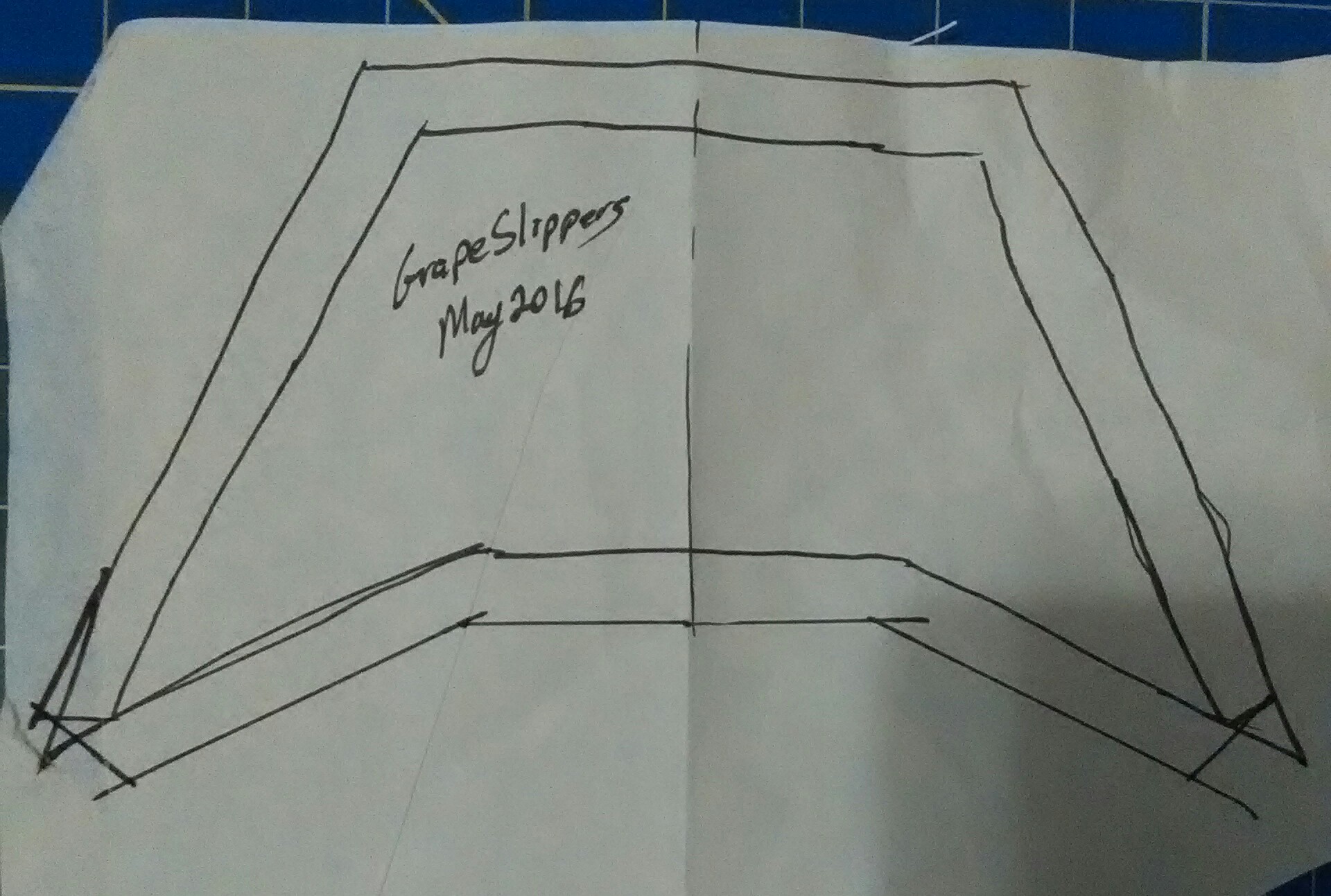 Lay these measurements out on a centered piece of paper. Connect all of the points. Shape to reflect your period’s slipper shape. Add seam allowances. I will use a half inch for the bottom (outer edge) and back seam, and no upper (interior edge) because I plan to bind that with ribbon on my wool pair. If I were not binding, I would leave a half inch, which I could trim down to a quarter inch.