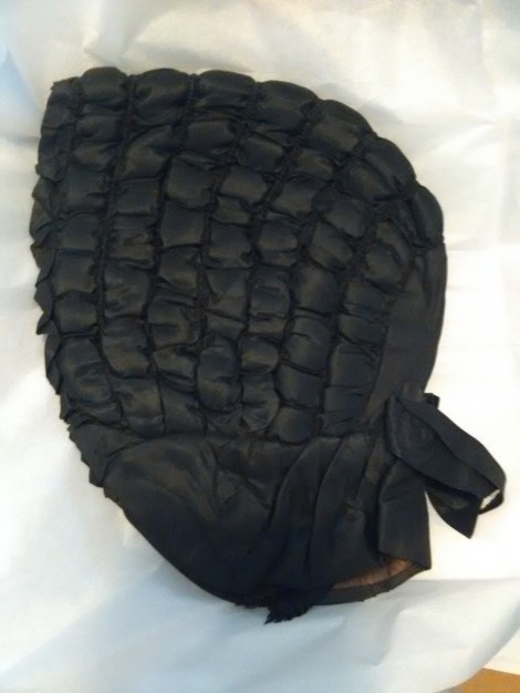 Dont worry, I haven’t forgotten the well loved wadded, or pumpkin bonnet. This thickly wadded silk bonnet is filled with wool. It is so and warm, protecting the wearer from the coldest of winters. I will be offering a few of these this winter in silk.