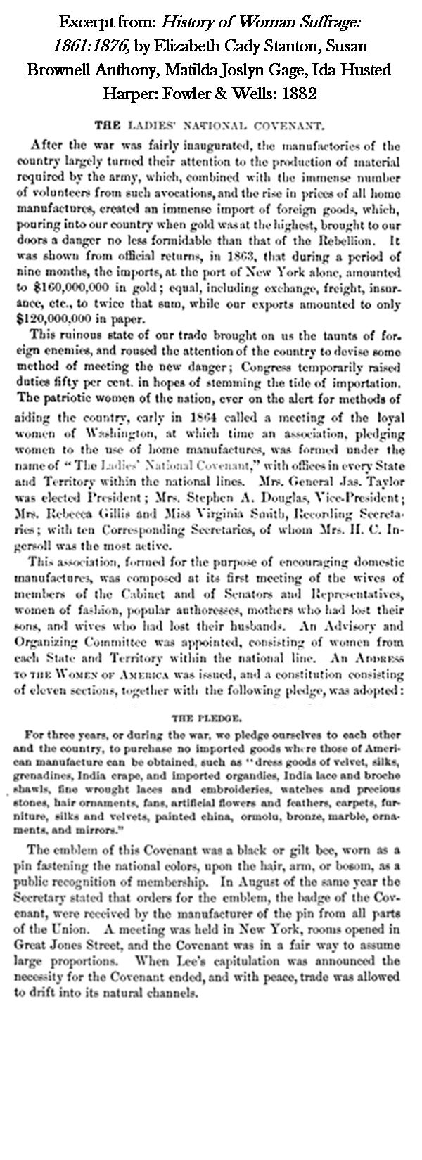 Ladies Cov clip 4“The emblem of this Covenant was a black or gilt bee, worn as a pin fastening the national colors, upon the hair, arm, or bosom, as a public recognition of membership. ”