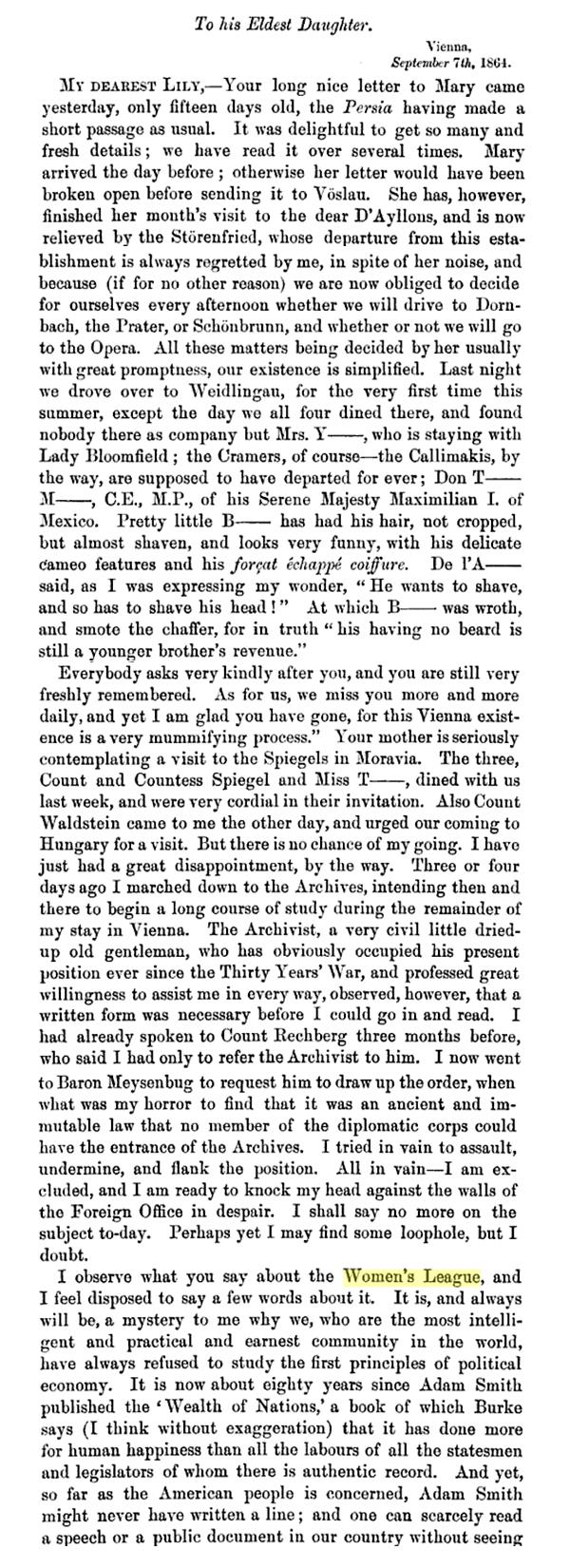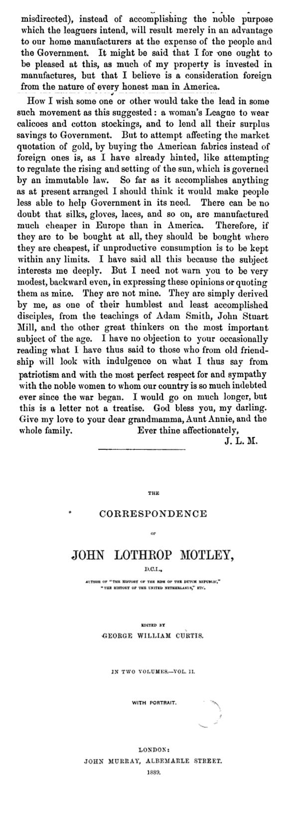 A letter to his sister, Lily, from John Loathrop Motley discussing his thoughts on the League.