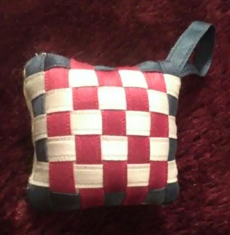 Woven Ribbon Pin Cushions are eye catching and a fun way of using ribbon. Most remaining examples seem to be coming up on auction sites, often with the all too popular but not authenticated Shaker attribution. (I can not say whether or not ribbon pin cushions have a Shaker connection.)