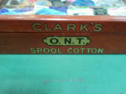 This next piece just fascinated me. It is a complete, or nearly complete salesman’s sample case. Or, atleast that is how the dealer explains it. I loved it both for what it was and the ideas for other displays that popped into my head. Each piece is numbered. I would have loved to read what each numbered item was in the words of the salesman. Number 1 is in the upper right corner, with numbers one through five being marked on a piece of wood or spool and a fiber. The numbers then proceed top to bottom, right to left. Okay, technically, I took the photo from the side. So, if shown from the front the numbers would proceed left to right, top to bottom.