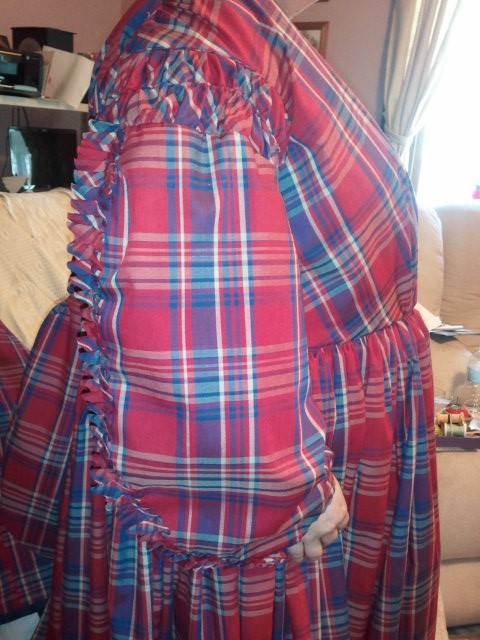 It was fun scaling down the winter bonnet patterns to doll size. I did one in a quilted style using a double twist pattern and one in the corded and wadded style that I find to be nicely warm. These are for dolls with 9.5″ to 10″ heads.