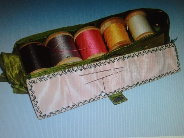 I’ve been cutting the materials for my new Exploring the Work-box: Tools and Trims. This is the workshop held on Friday. Next, I have to make sure I have all the samples organized and pretty. Attendees will be making their own sample book filled with trim samples made with the antique pinking tools I am bringing. I hope this will be the first in a series of “Explore the Work-box” workshops. Btw, I think I will be naming the pinking machines.