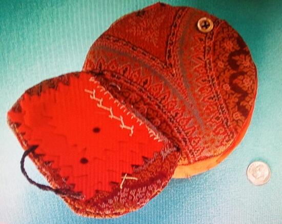 A velvet pin cushion in nearly the same shape as the wreath, just with a center piece.