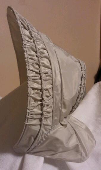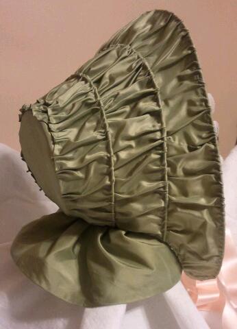 The Hour-Glass (fig 18) – This may be made in two ways. First cut four pieces like fig 19, cutting off the dotted piece at the side (not at the top). Cover each piece with white satin; sew them together. Cut two rounds, much larger, of card; cover each with brown satin. Sew on by the pieces marked A and B, fig 19, which are to be turned down. They should have been half-cut through before sewing. Take two pieces of wire, bind coloured ribbon round them, and sew them to the hour-glass. Cut a piece of card like fig 11; half-cut through the dotted line; stitch it to the top; cover the top with satin. This completes the whole of it. The second and simpler way is to cut the hour-glass like fig 19, half-cutting through the dotted lines, and by the side pieces; gum them neatly together. On the sides draw flowers in water-colours, or paste on spangles.