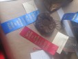 I still have my ribbons from when I was younger and entered work in th Genesee Country Village’s Agricultural Society Fair. I remember going through their box, making sure each one was perfectly neat inside. I also remember Grandma Kramer making a point to get her one last hooked rug finished before she passed away so it could be in the fair. I would have rather her had a chance to do the other border around it with the birds at each corner. So, needless to say it was important to me to get to enter a few things in this year’s fair. Next year I’ll get a rug in.