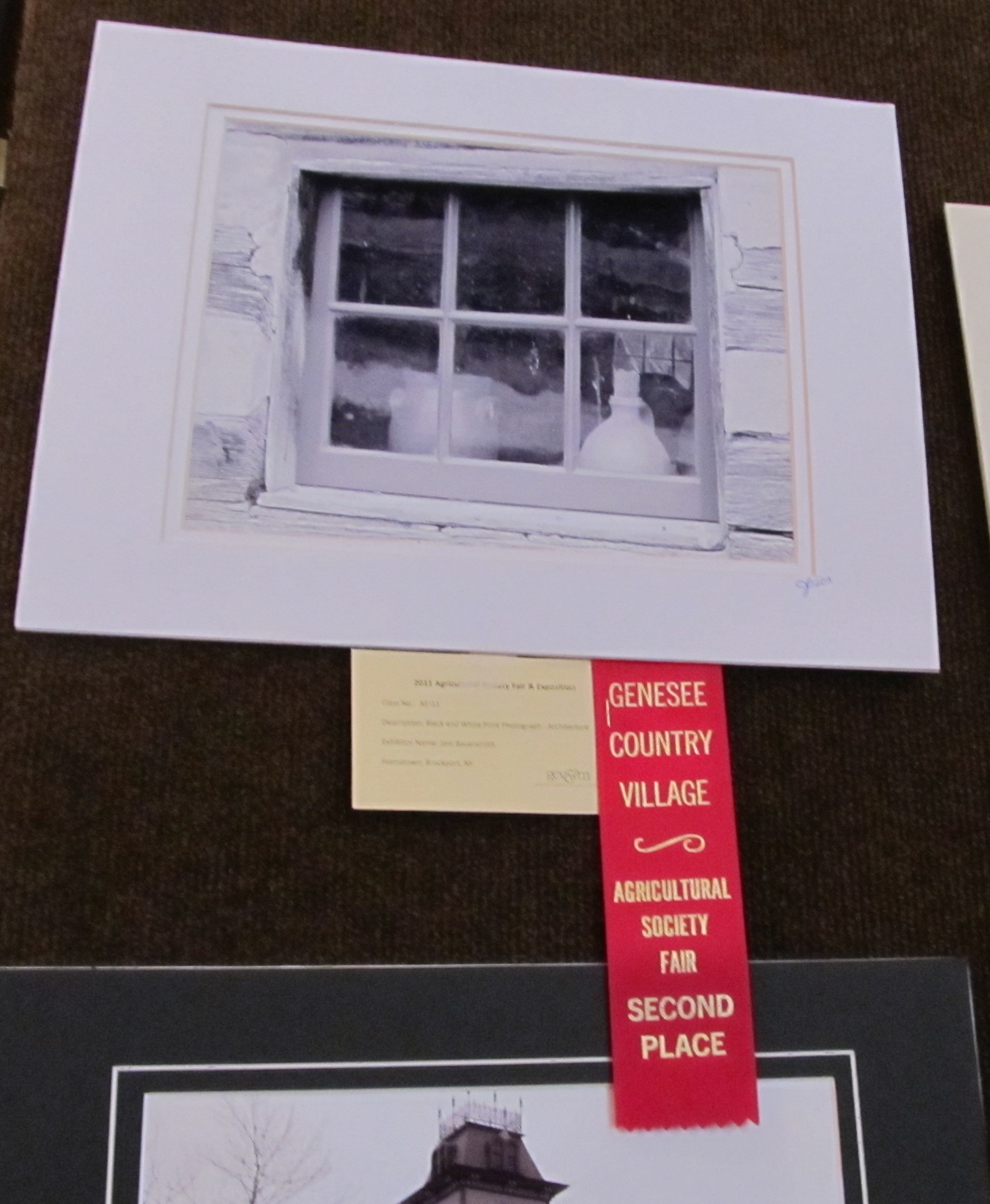 I was able to talk Joni into entering this year too. She got a red and white ribbon for two of her photographs. The red ribbon is a neat look through a village window while the white ribbon is a shot of the cannons at the Civil War event.