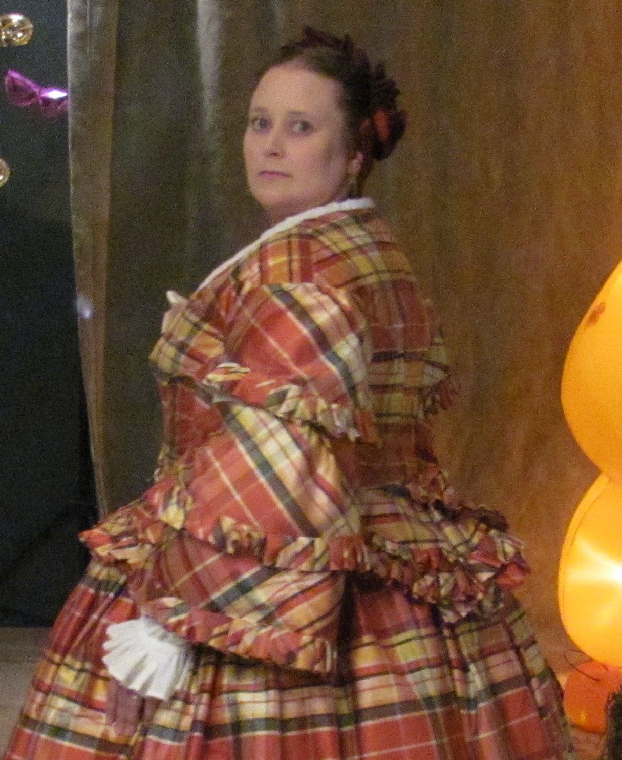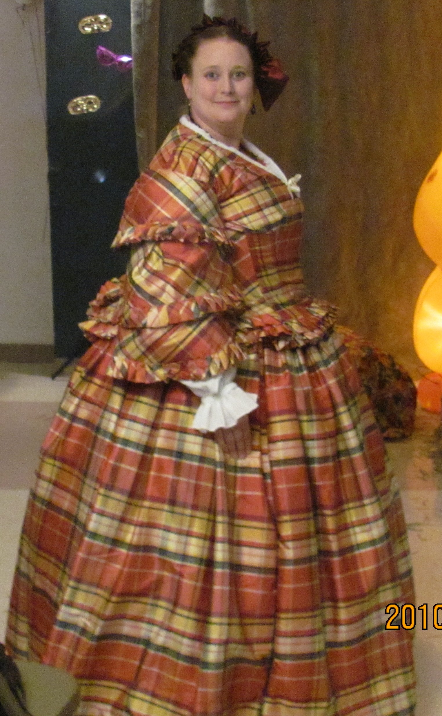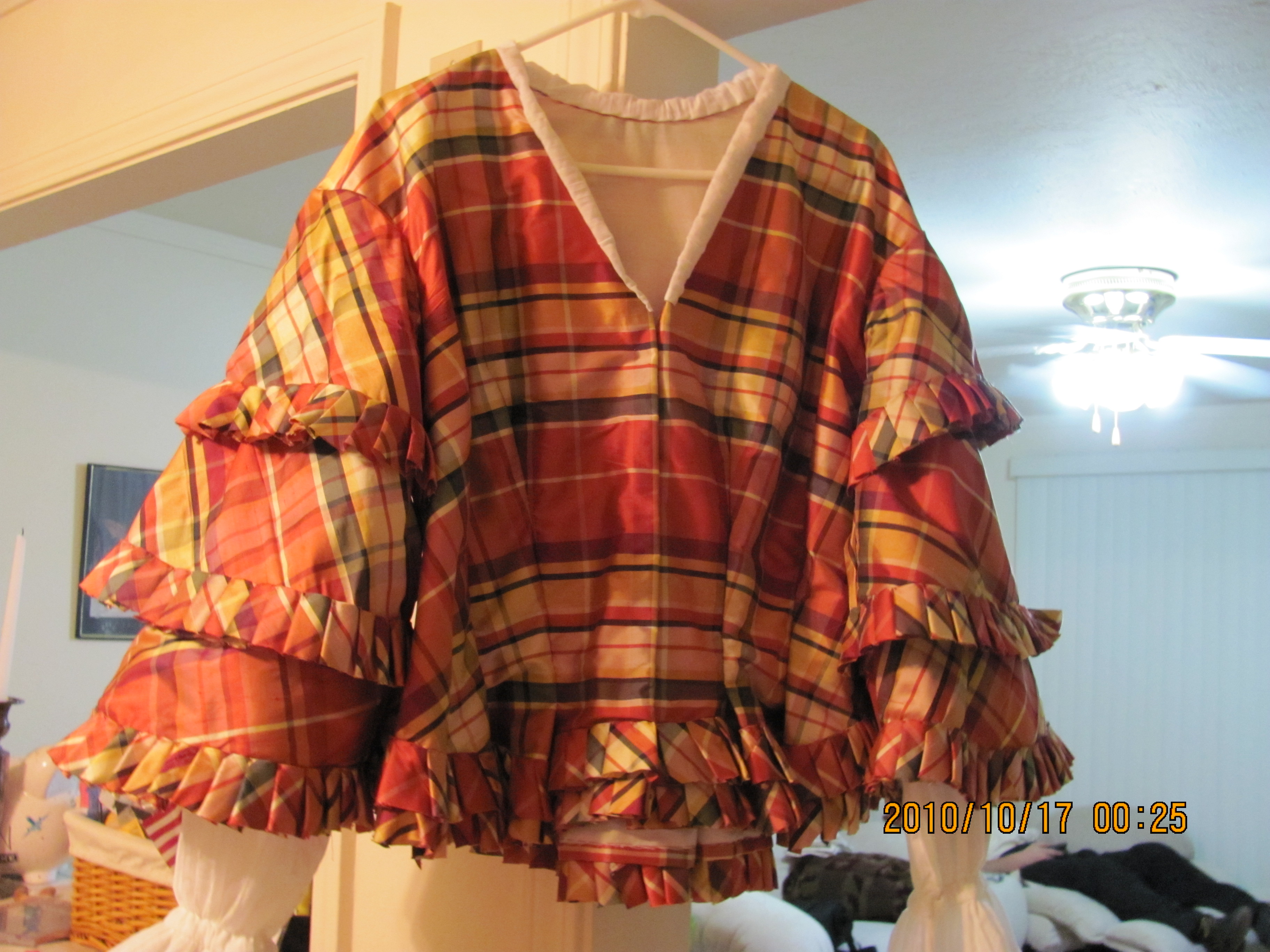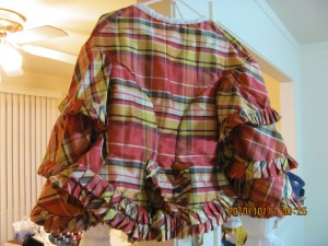 The back is a two piece back. I tried to line up the plaid horizontally. I think I did fairly well given how the pieces curve. The pepulum is shaped with two box pleats underneath the pleating. The trim was actually an after-thought when I had some left.