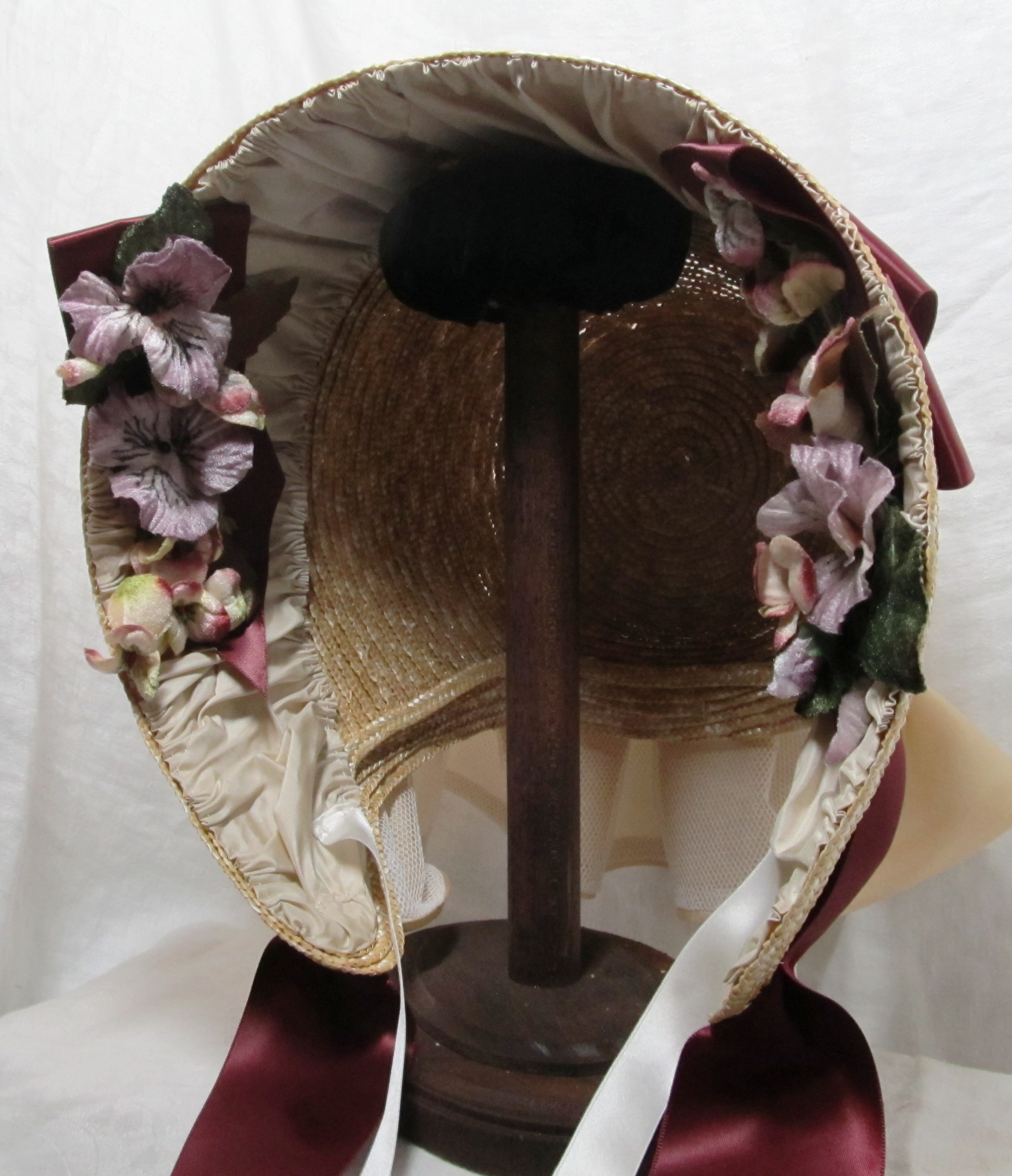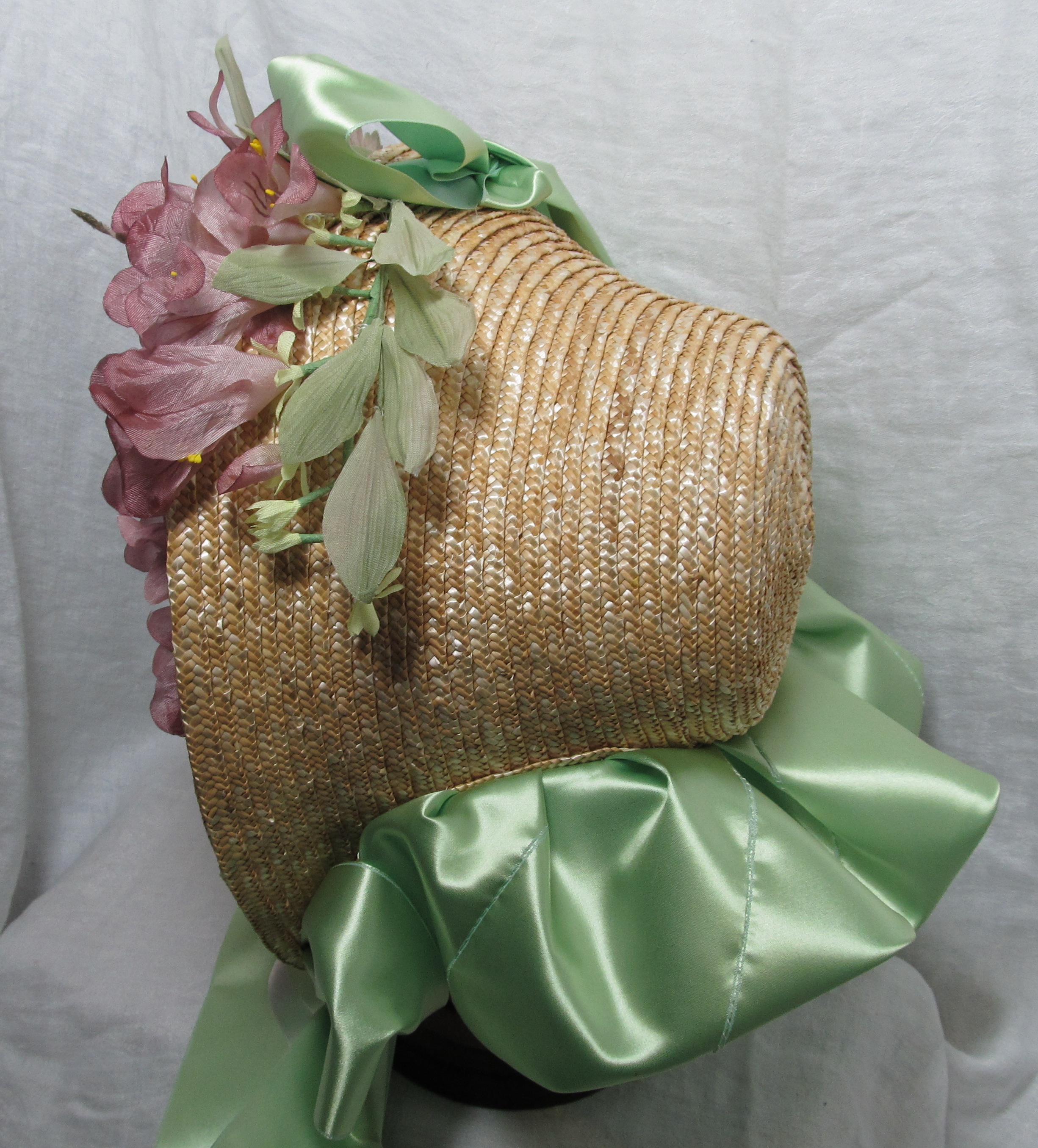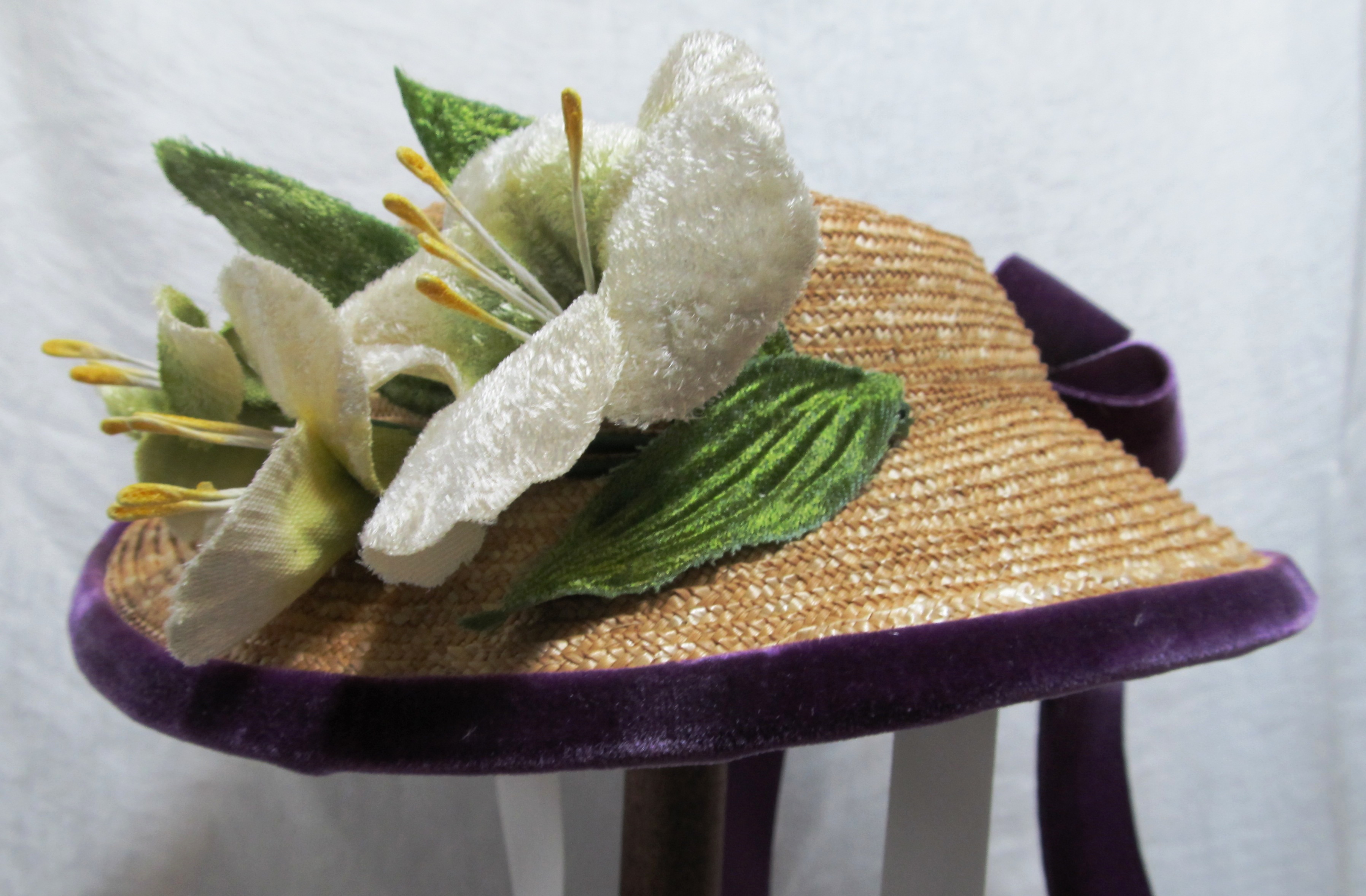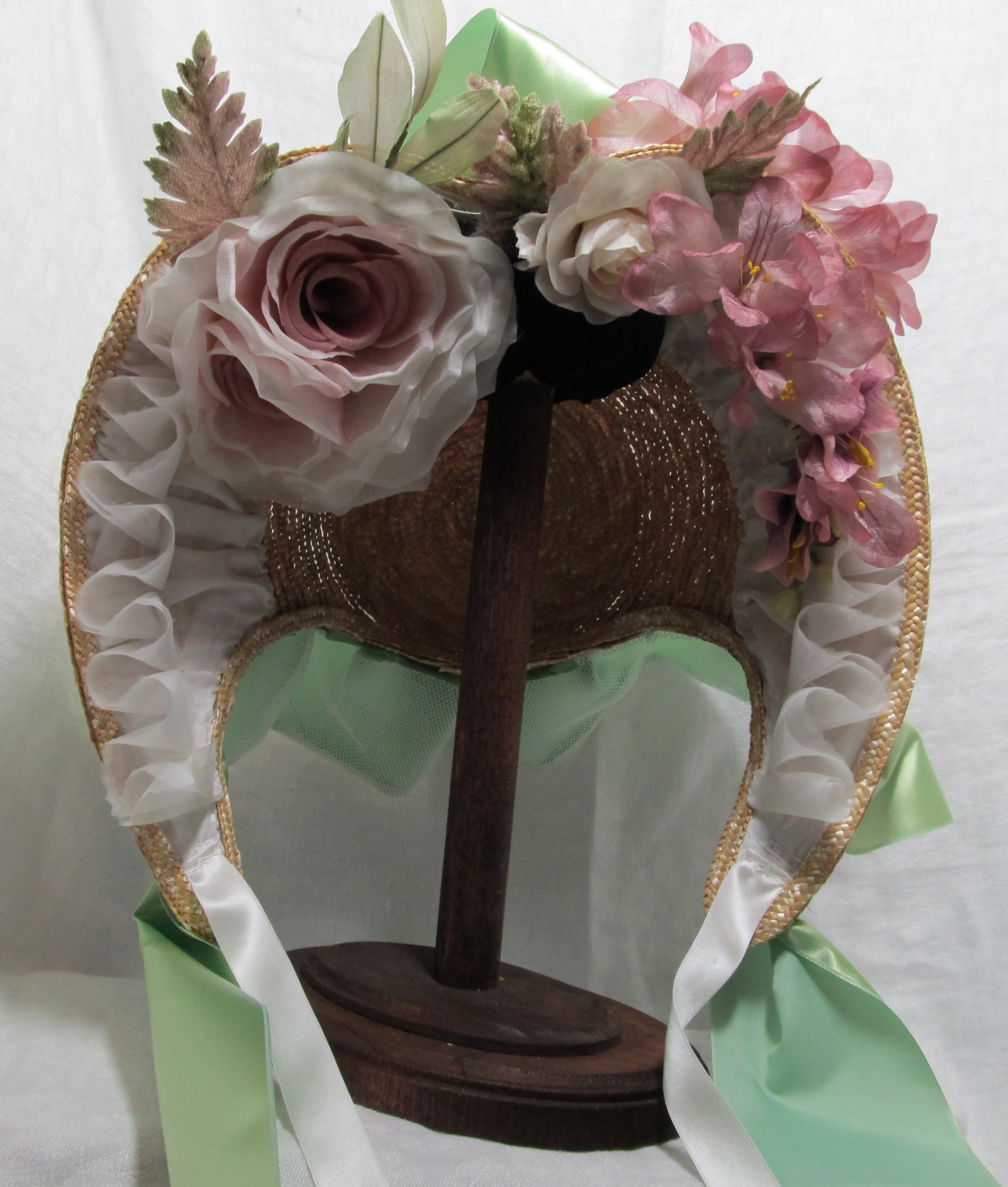 I have written a couple posts in the past about caring for or storing our bonnets. Lately, a few specifics “uh-oh” fixes have been asked of me. So, I thought it would be good to put together a more detailed article on millinery care and first aid. Here I will be talking about Straw millinery only.